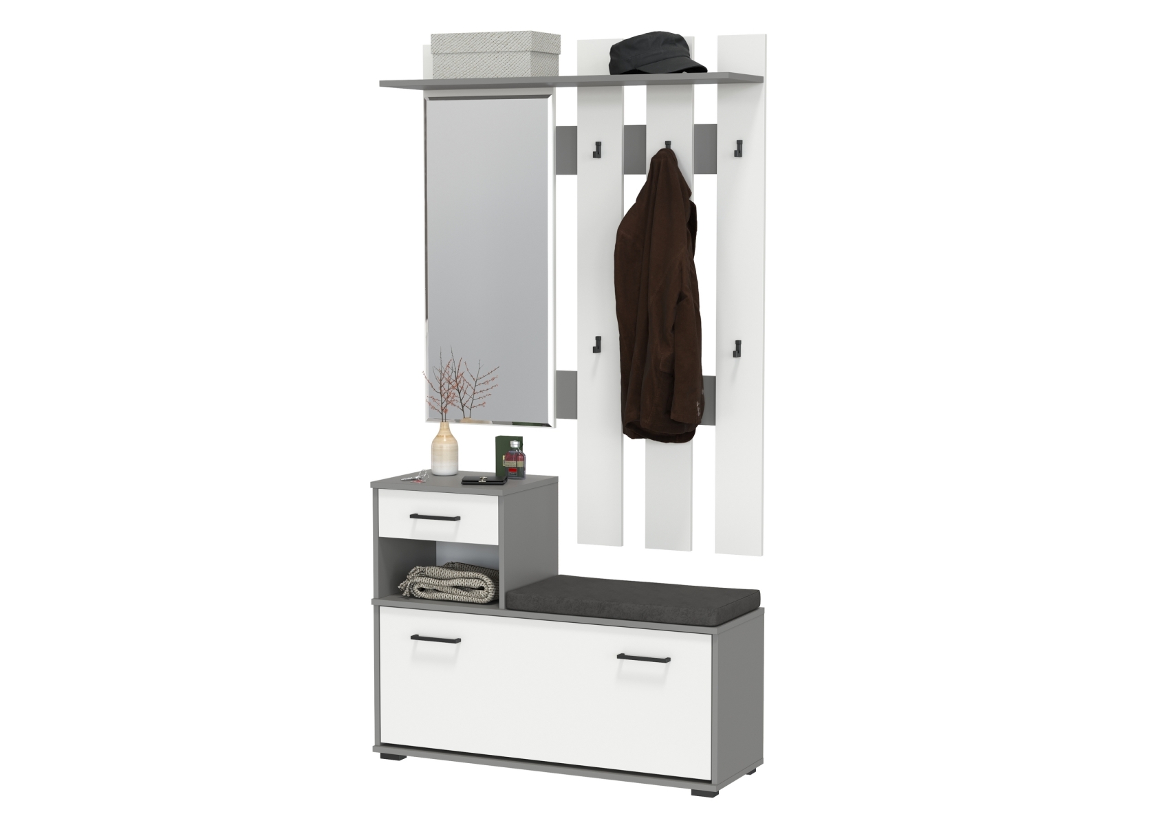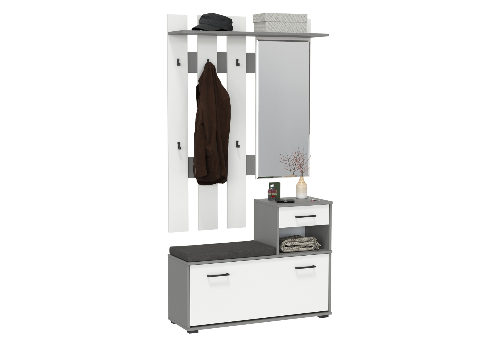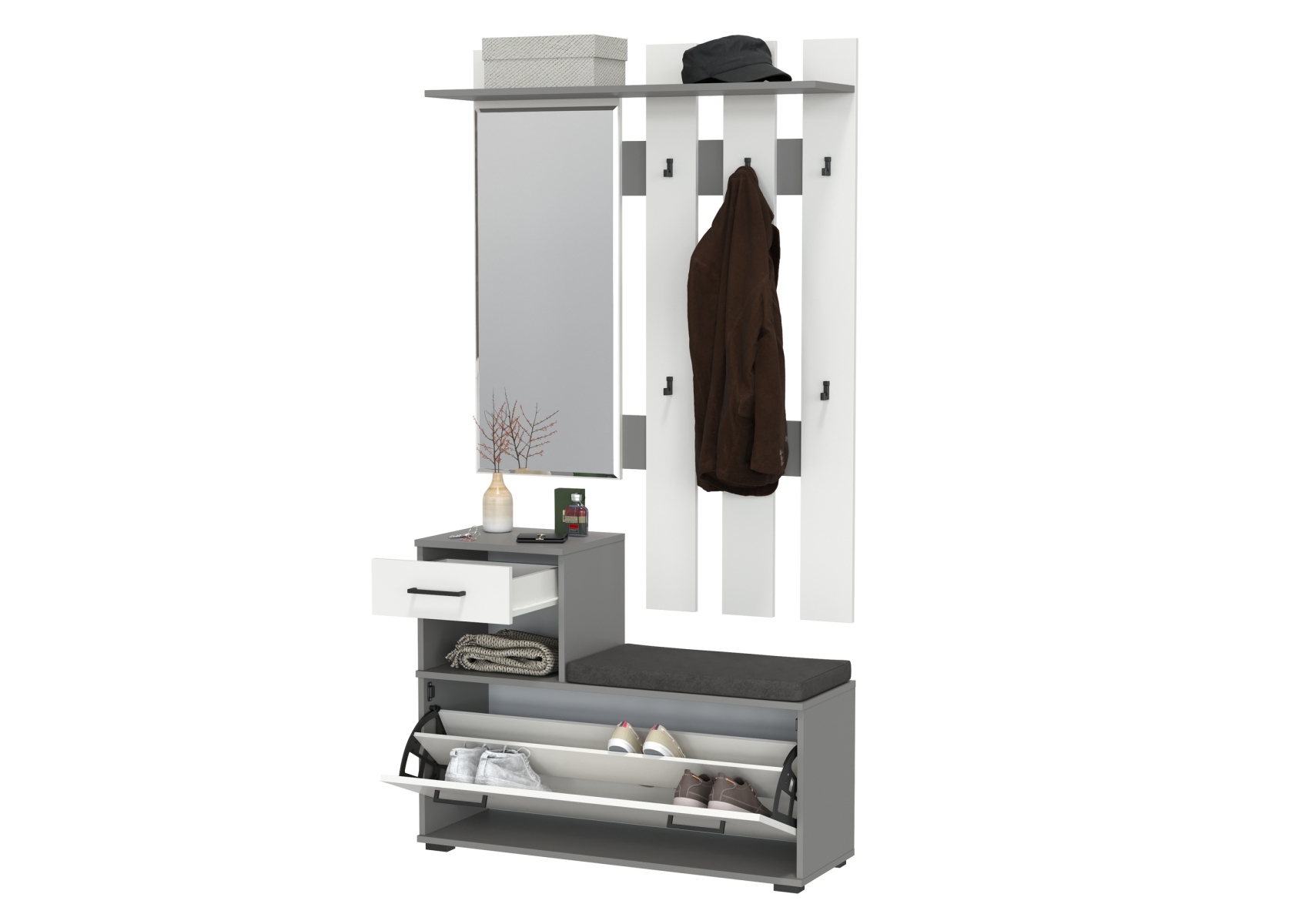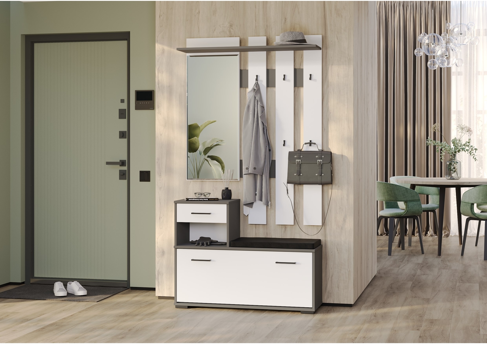 Лира ГК Прихожая 1 2-0714+2-3814 Тумба под обувь + Вешалка с зеркалом, цвет графит/белый, ШхГхВ 100х33х185 см., универсальная сборка