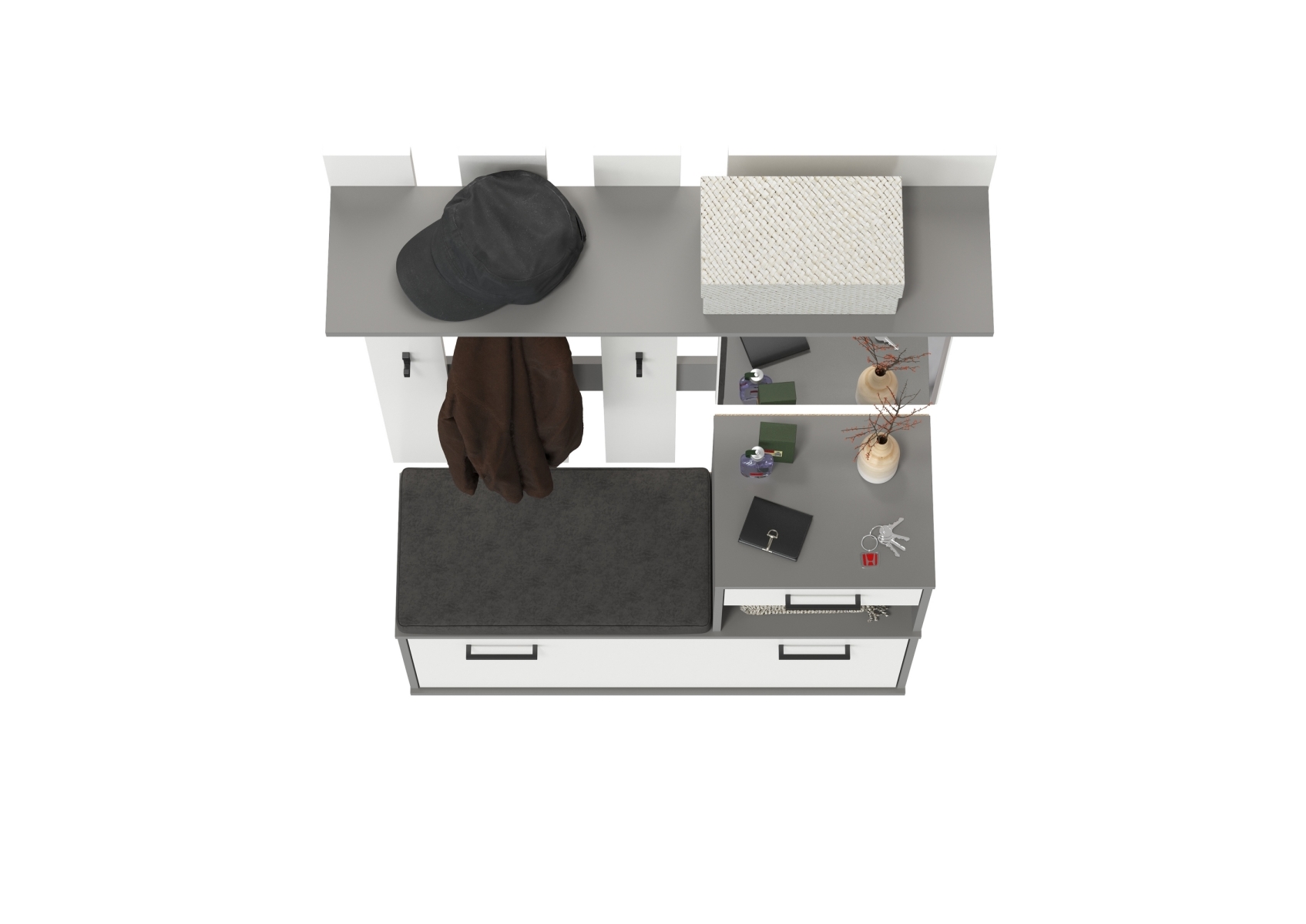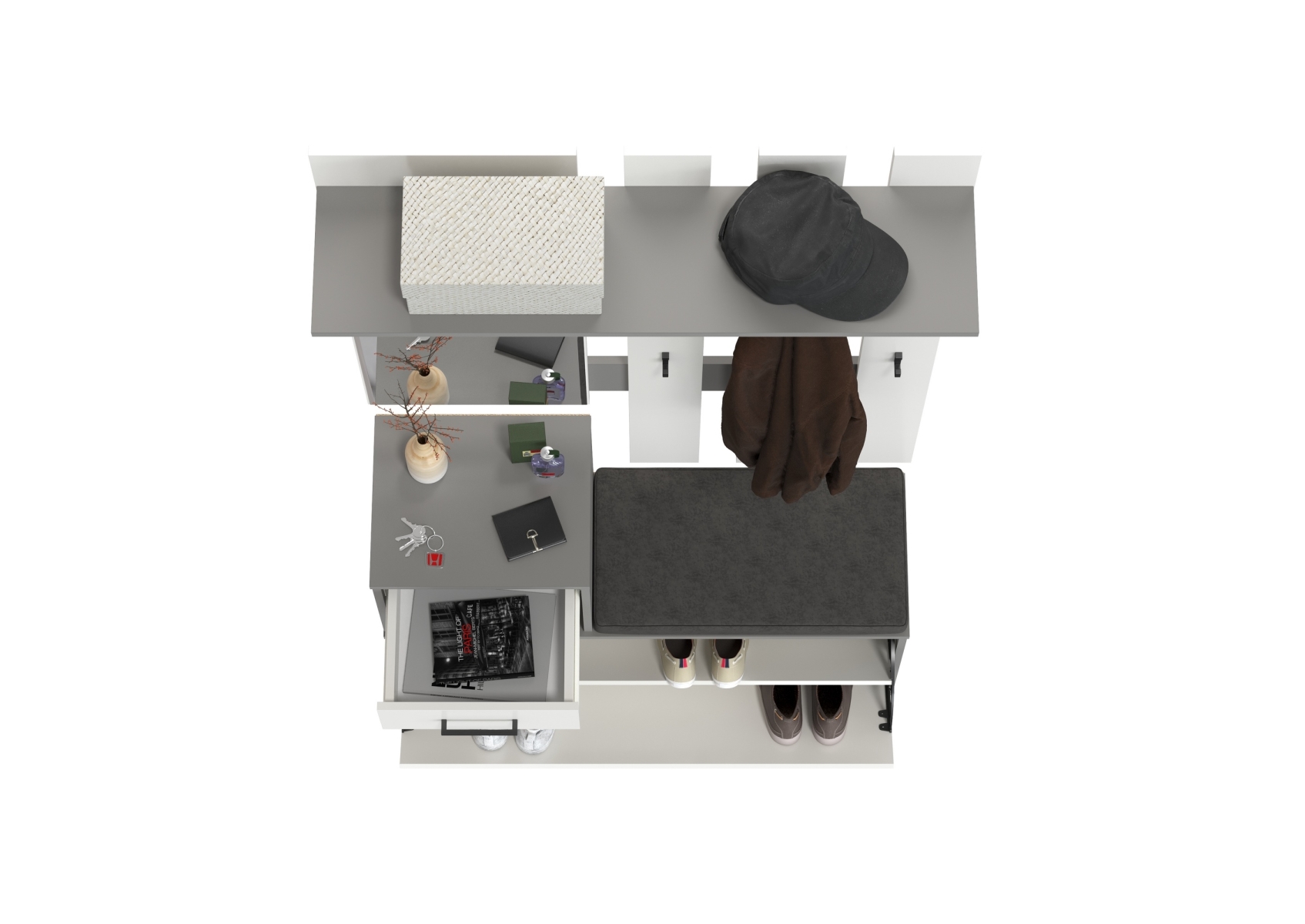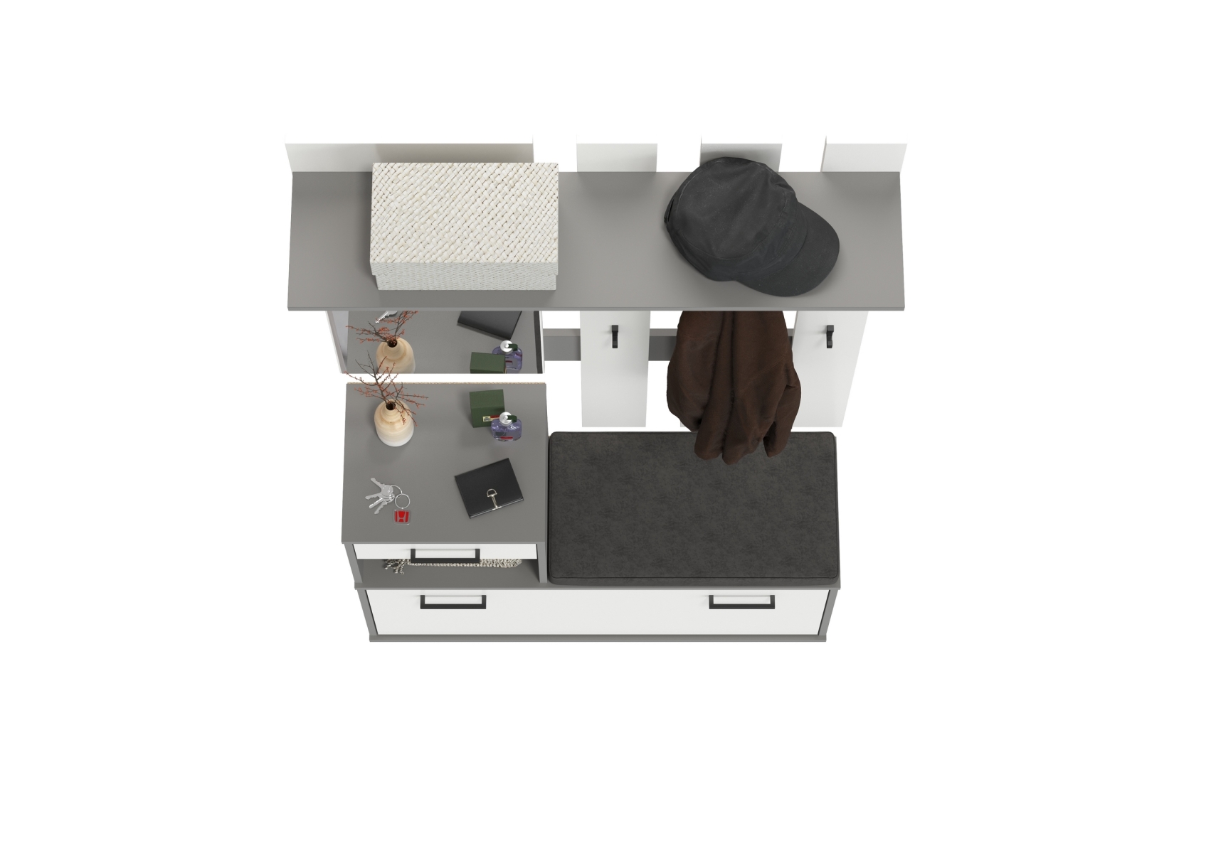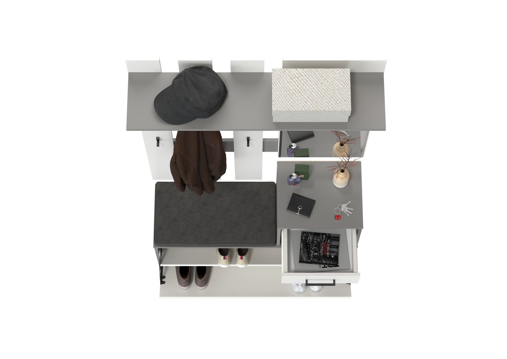 Лира ГК Прихожая 1 2-0714+2-3814 Тумба под обувь + Вешалка с зеркалом, цвет графит/белый, ШхГхВ 100х33х185 см., универсальная сборка
