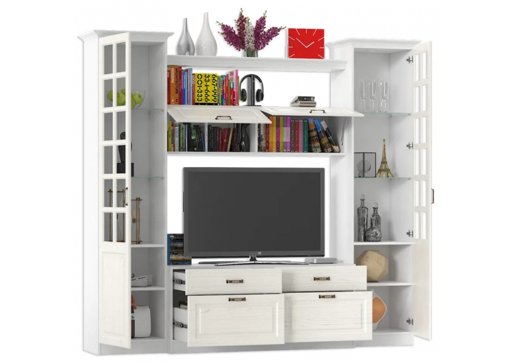 Модульная гостиная Ливерпуль белый / ясень ваниль НМ-1012-100 комплектация 1