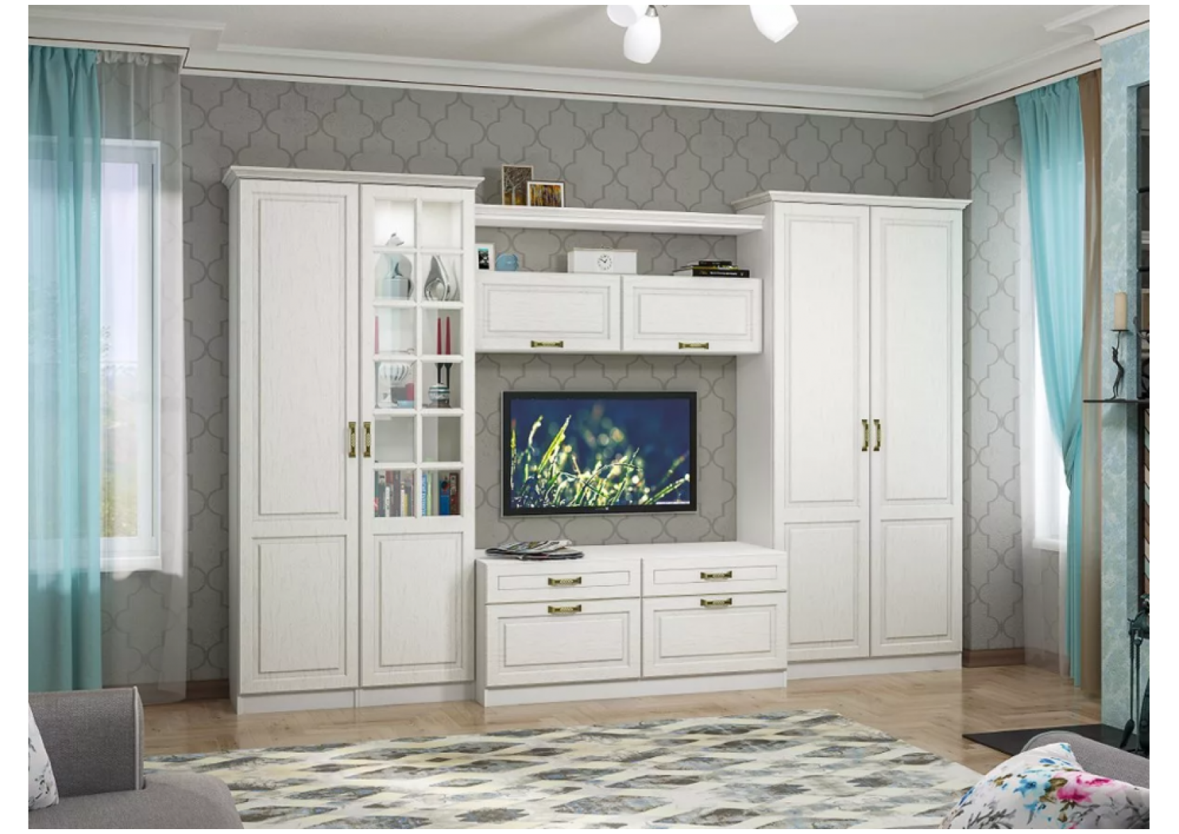 Модульная гостиная Ливерпуль белый / ясень ваниль НМ-1012-100 комплектация 4