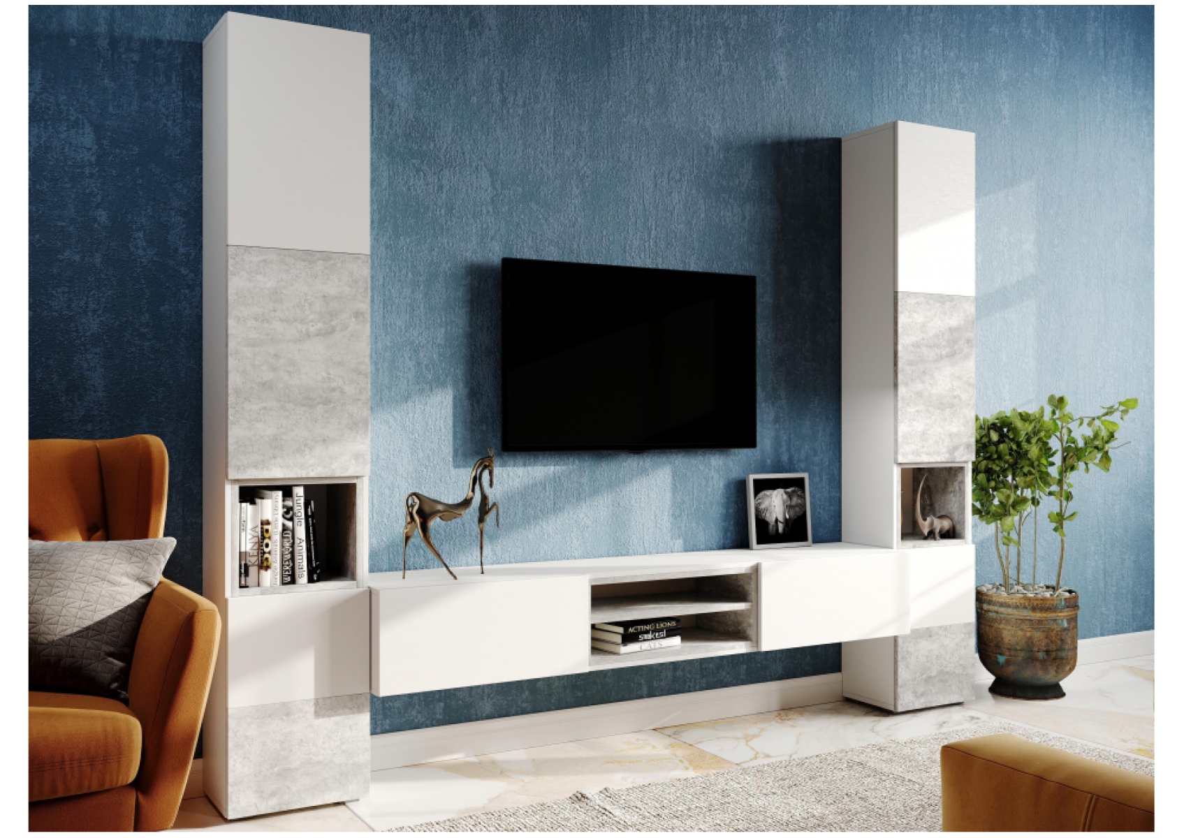 Стеллаж Лонгфорд белый / бетон светлый