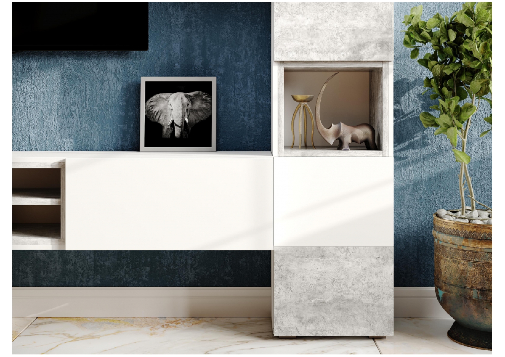 ТВ-тумба Лонгфорд белый / бетон светлый