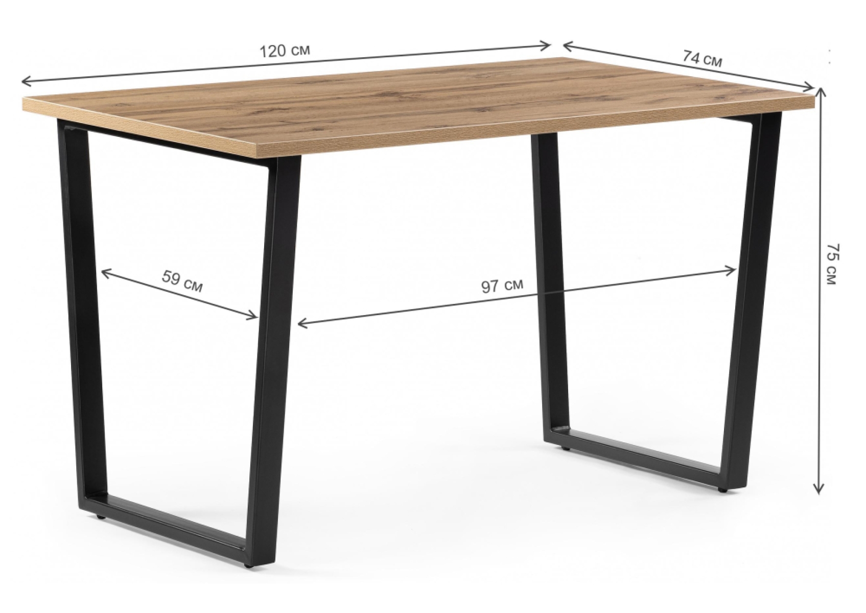 Стол Лота Лофт 120х74х75 25 мм дуб вотан / матовый черный