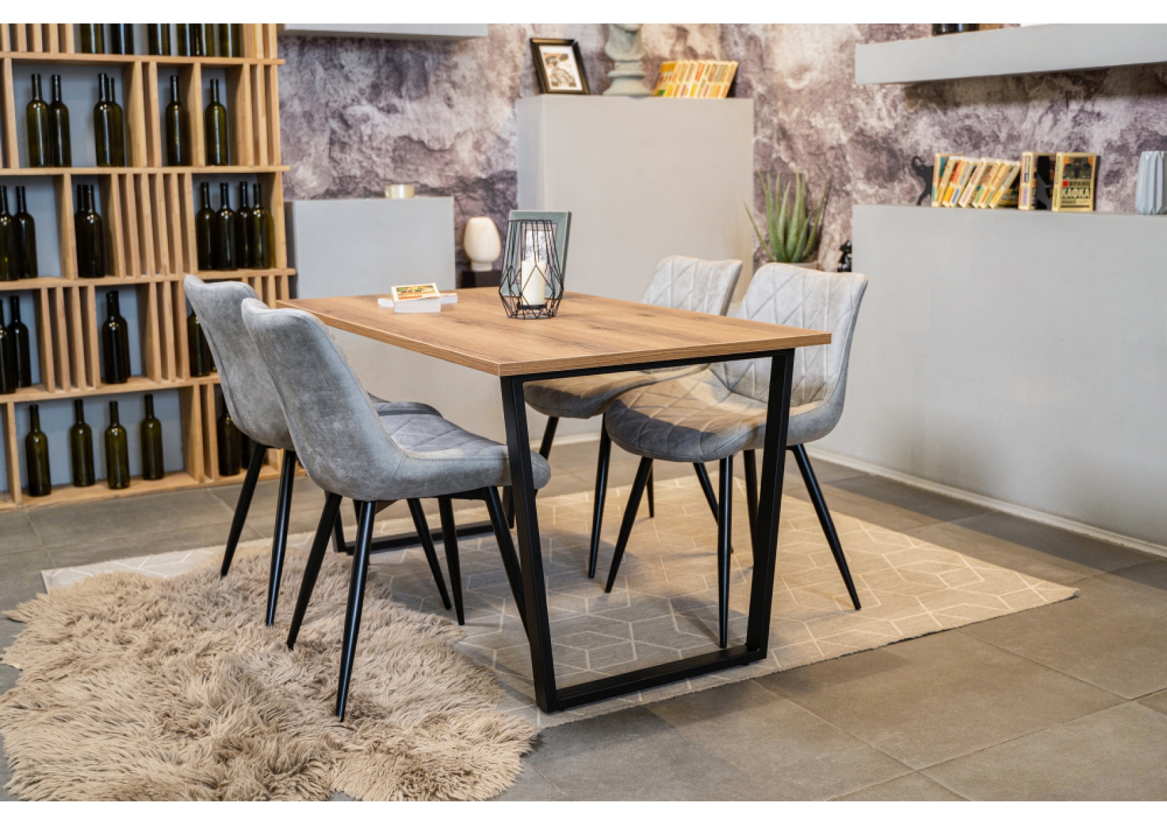 Стол Лота Лофт 140х80х75 25 мм дуб вотан / матовый черный