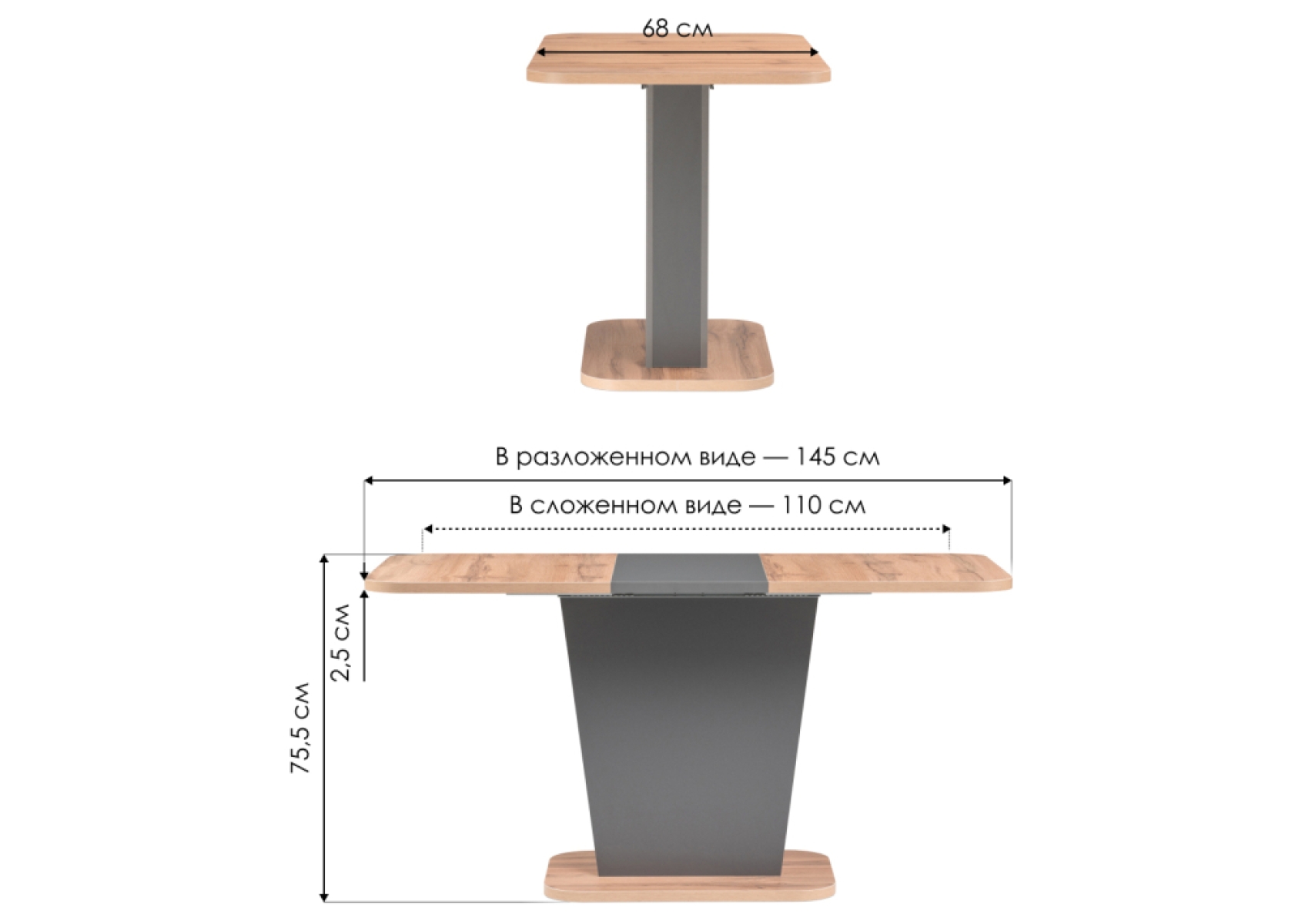 Стол на тумбе Лурвин 110(145)х68х75 дуб вотан / графит