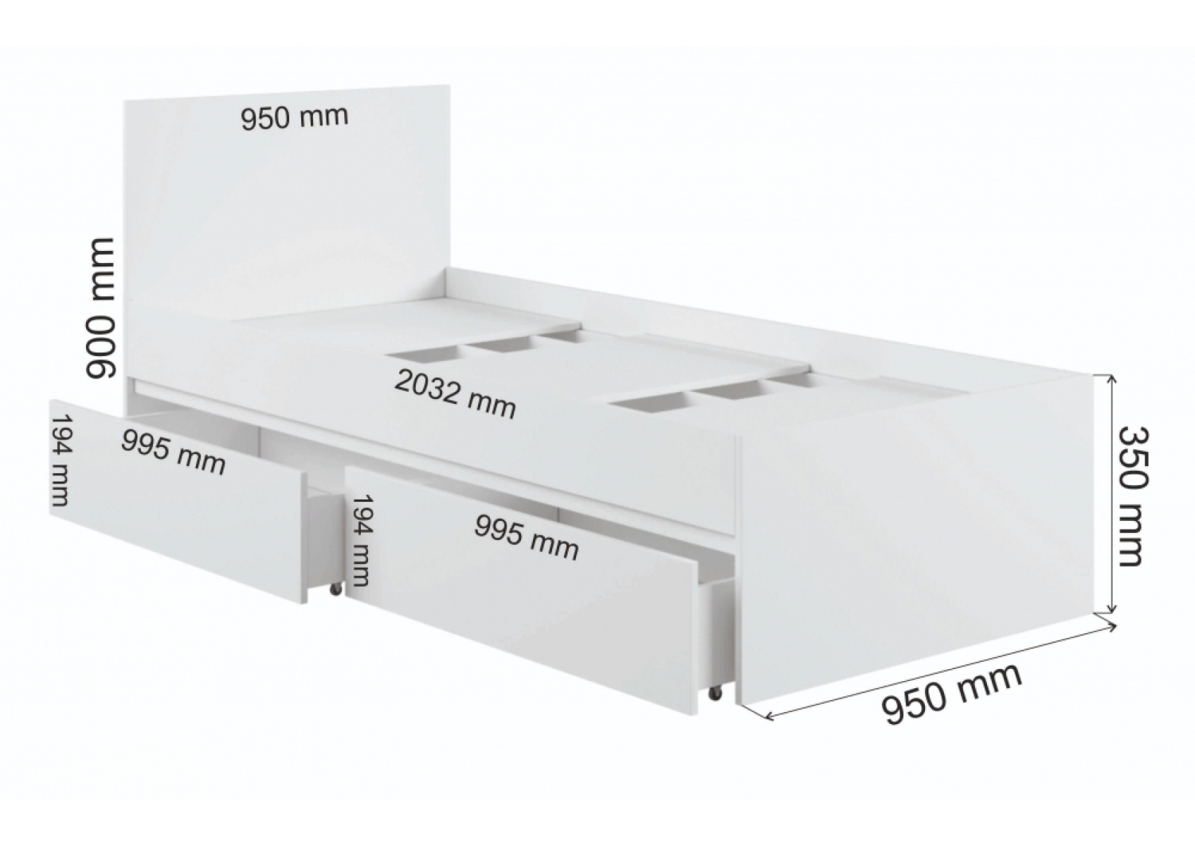 Односпальная кровать Мадера 90х200 белый