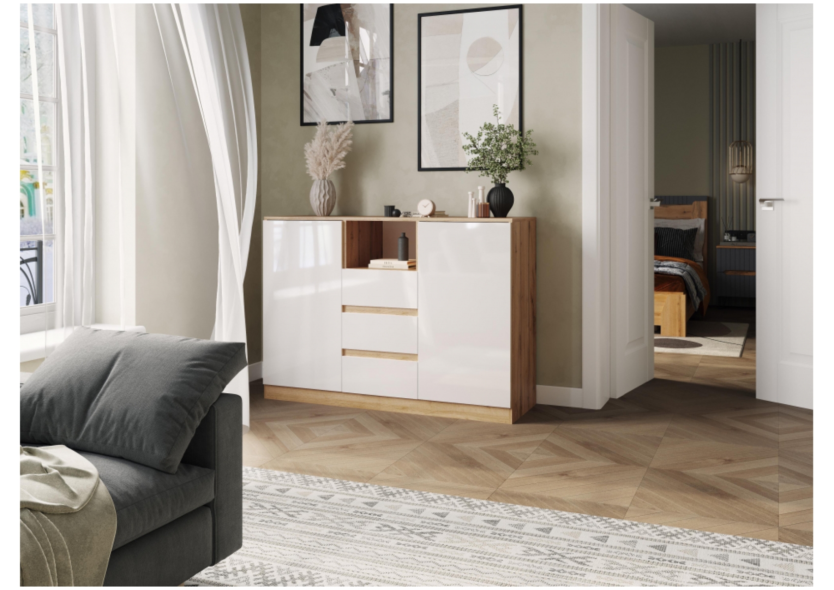 Комод Маллоу-2 дуб вотан / белый глянец