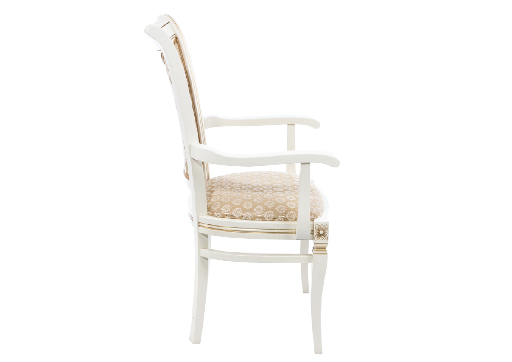 Кресло Mariano - это прекрасный выбор для тех, кто ценит комфорт и красоту. Его каркас из массива бука обеспечивает прочность и надежность, а обивка из ткани придает ему уютный и удобный вид. Резные узоры на ножках и спинке придают креслу изысканный прованс стиль, который позволит создать уютную и романтичную атмосферу в комнате. Более того, данный стул является премиум качества, что гарантирует его долговечность и надежность.