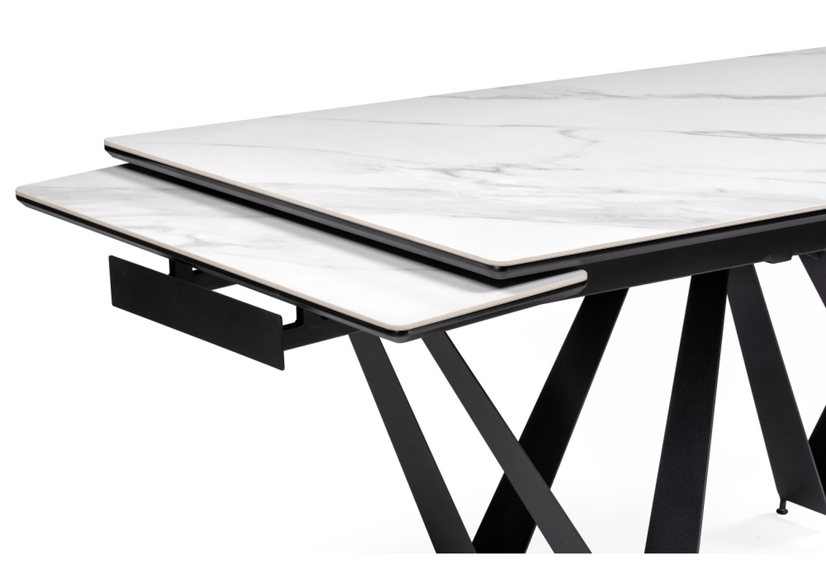Керамический стол Марвин 160(220)х90х76 белый мрамор / черный
