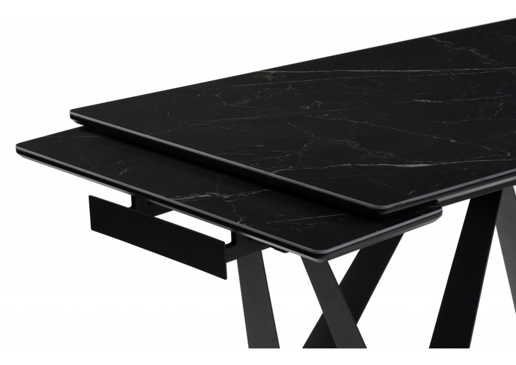 Стеклянный стол Марвин 160(220)х90х76 черный мрамор / черный