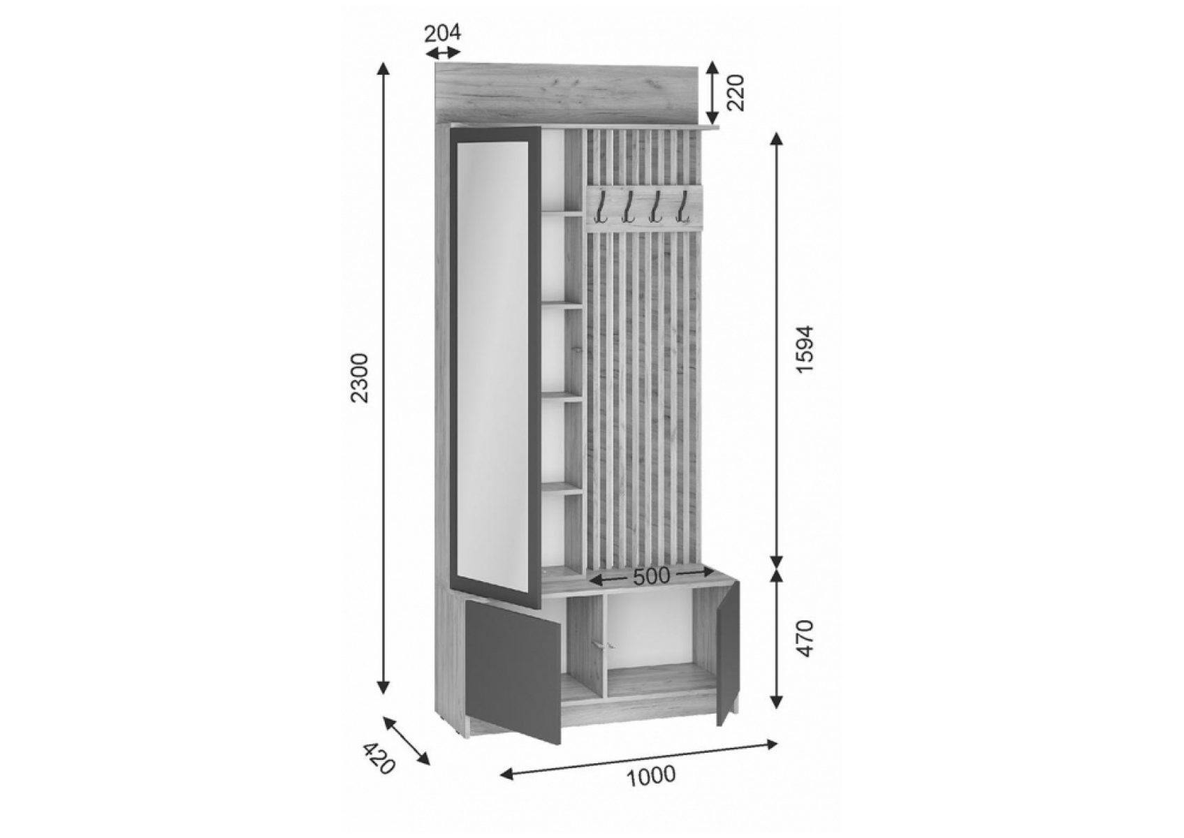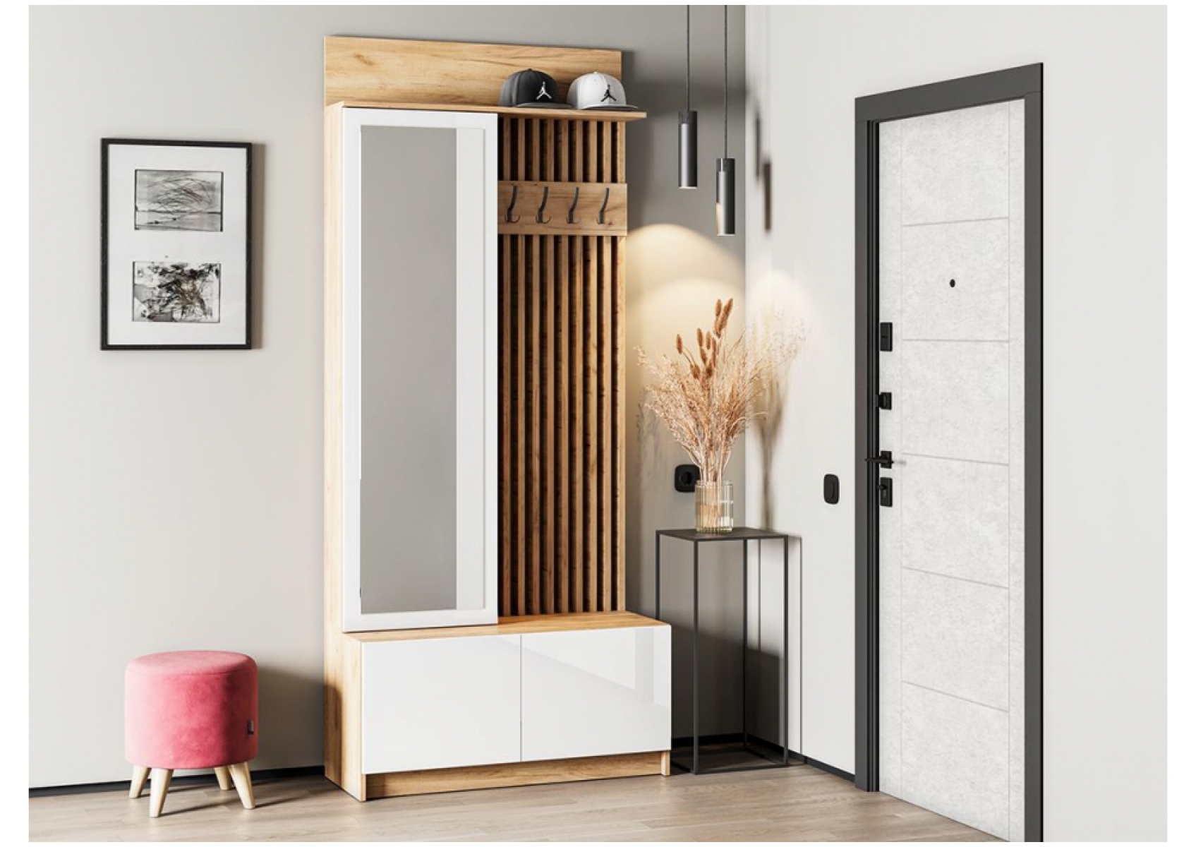 Готовая прихожая Молд 1000 дуб крафт золотой / глянец белый