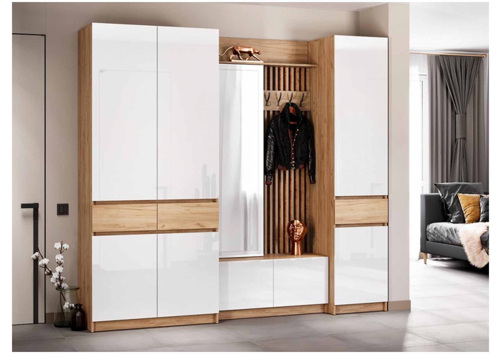 Модульная прихожая Молд комплектация 1 дуб крафт золотой / глянец белый