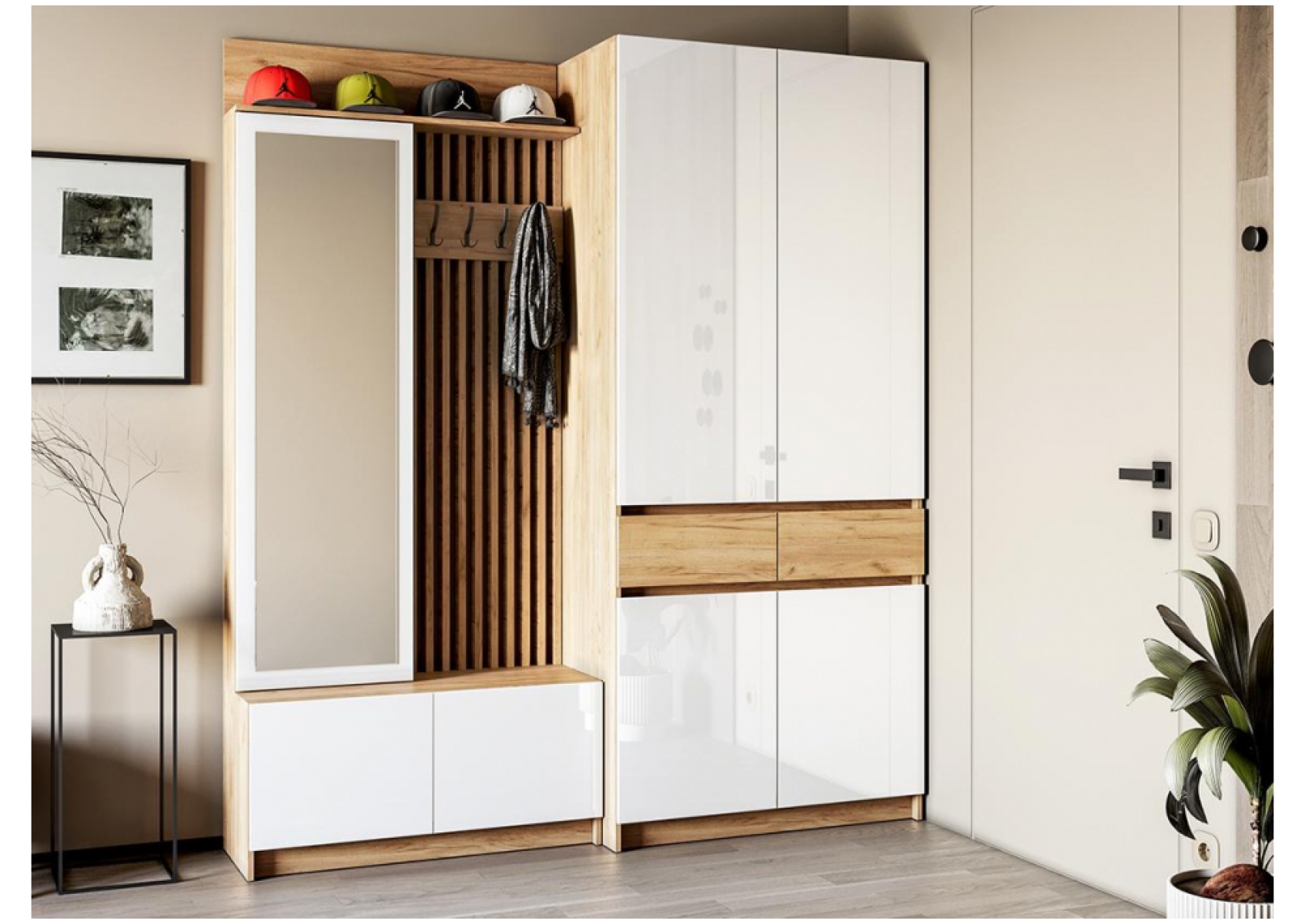 Модульная прихожая Молд комплектация 2 дуб крафт золотой / глянец белый