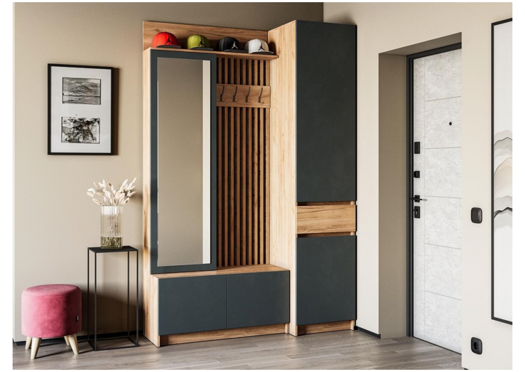 Модульная прихожая Молд комплектация 3 дуб крафт золотой / серый графит