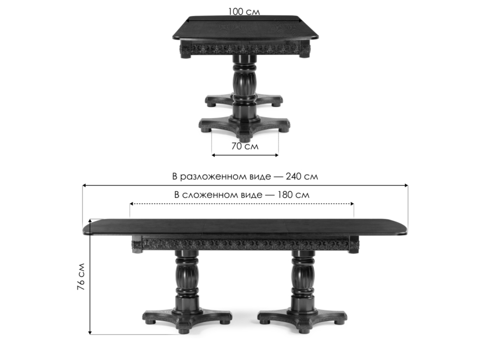 Длина стола в разложенном виде