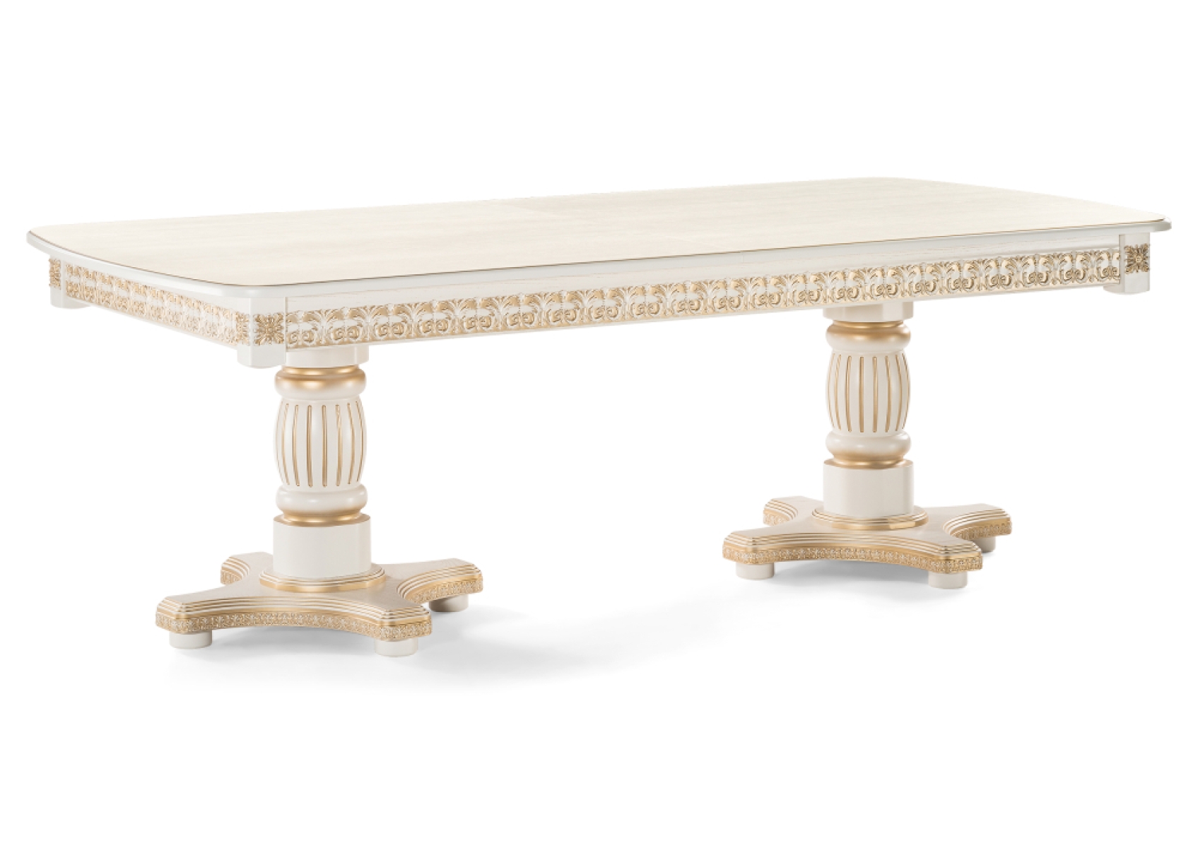 Деревянный стол Морнит 220(320)х110 молочный / золото