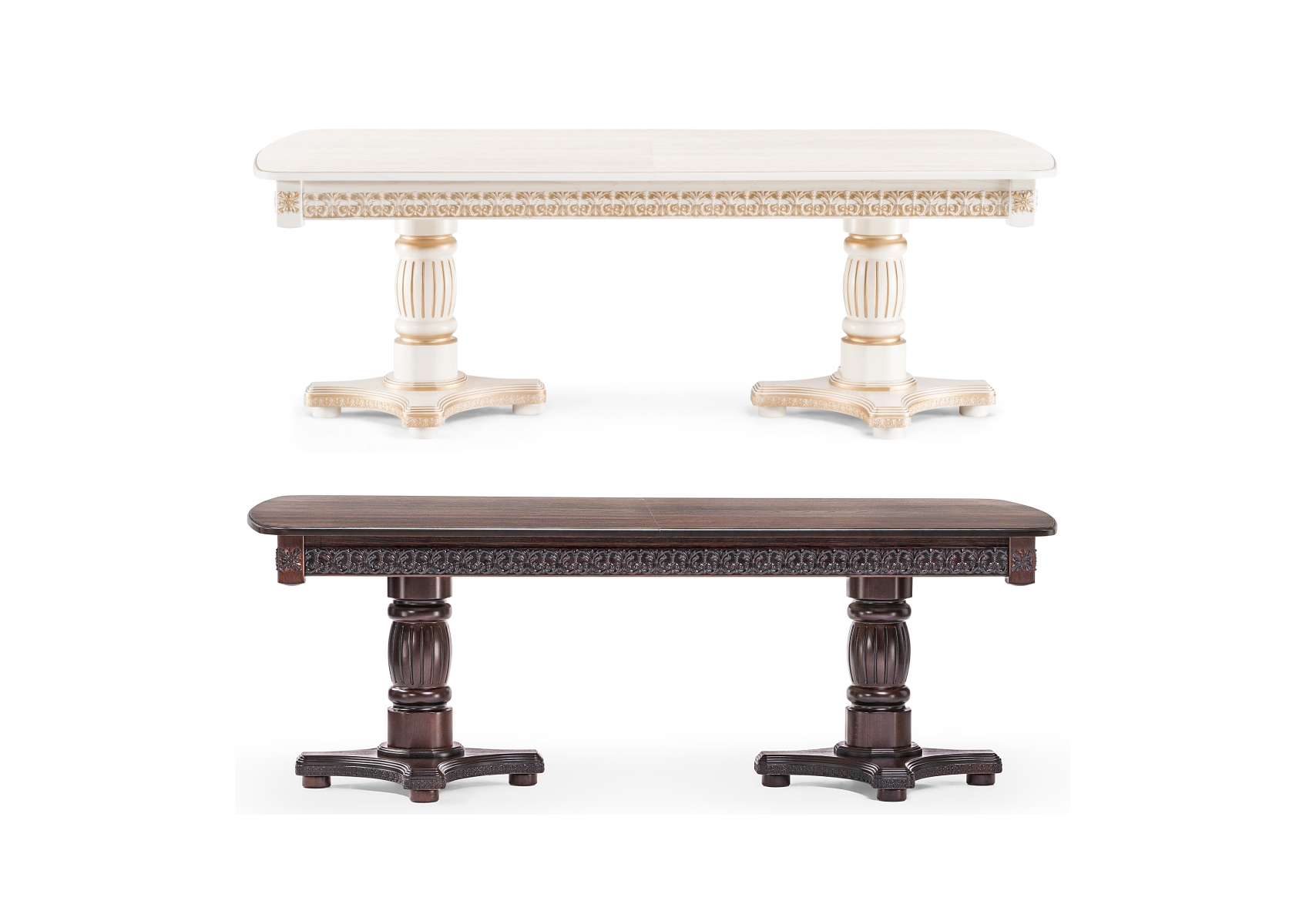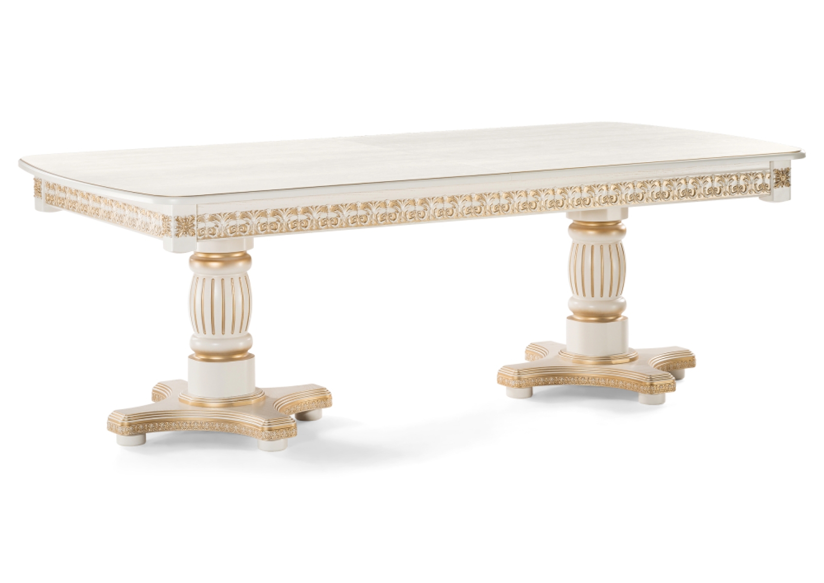 Деревянный стол Морнит 220(320)х110 слоновая кость / золото