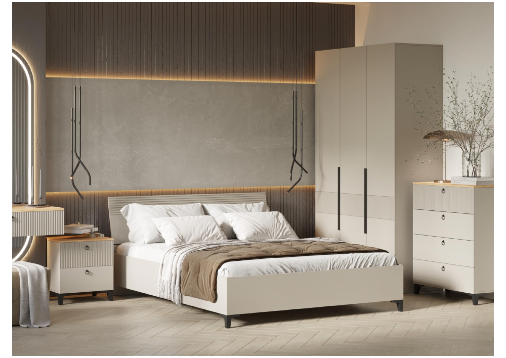 Двуспальная кровать Ника 160х200 с основанием дсп бежевый мат-05 / кашемир