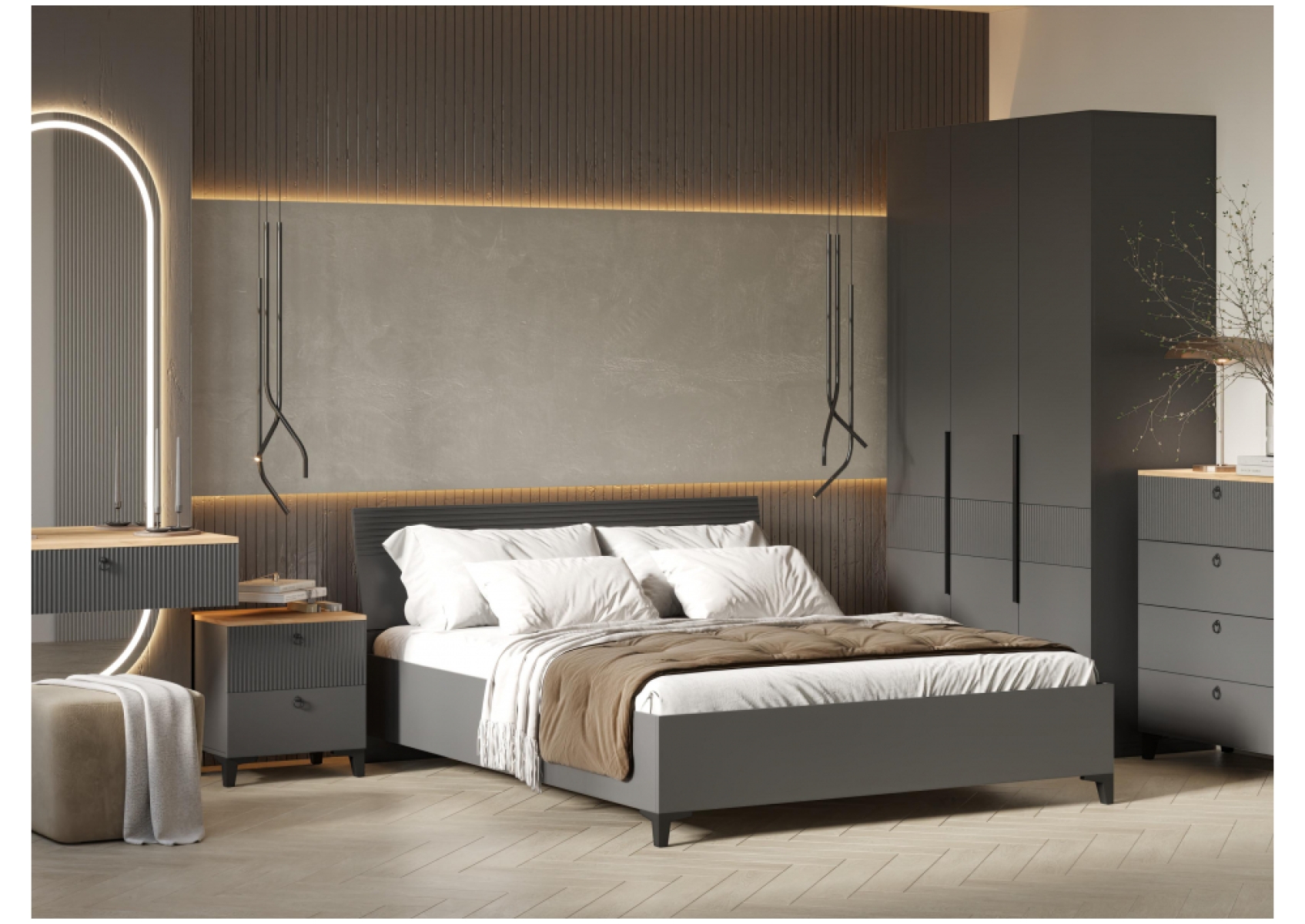Двуспальная кровать Ника 160х200 с основанием дсп эйхория QR-17 / графит