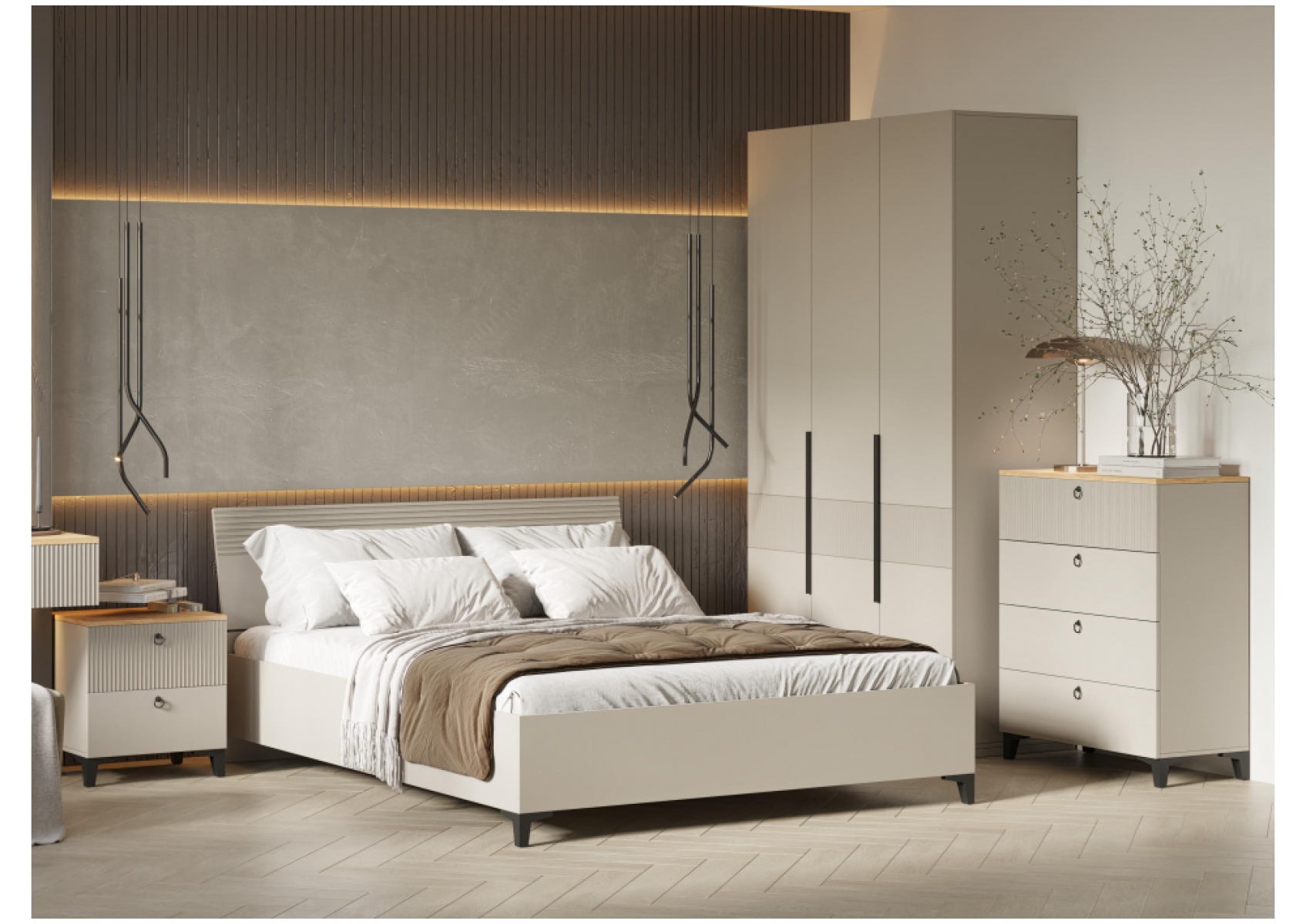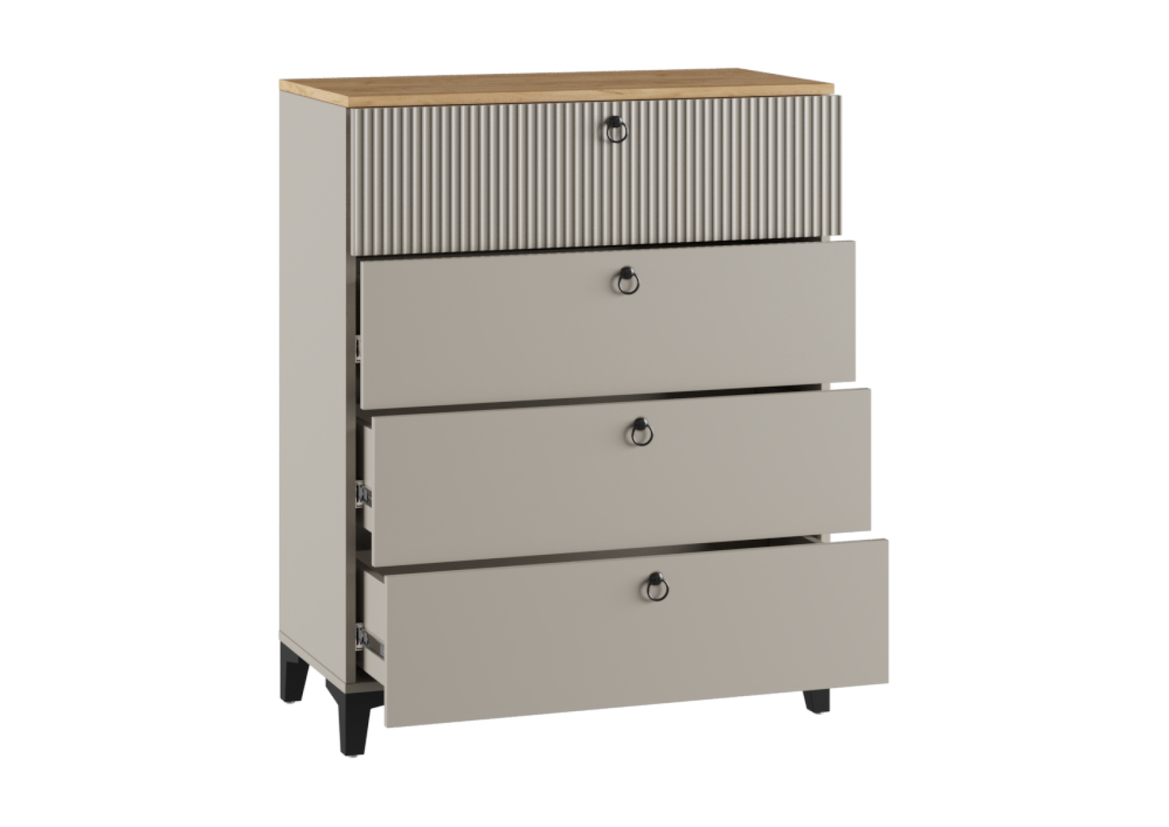 Комод Ника 4Я ПВШ бежевый мат-05 / кашемир / дуб делано
