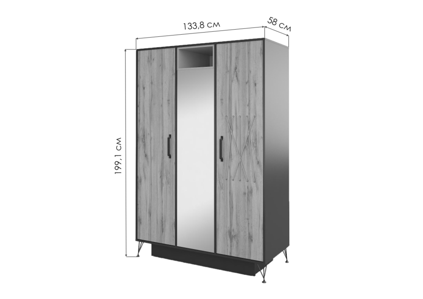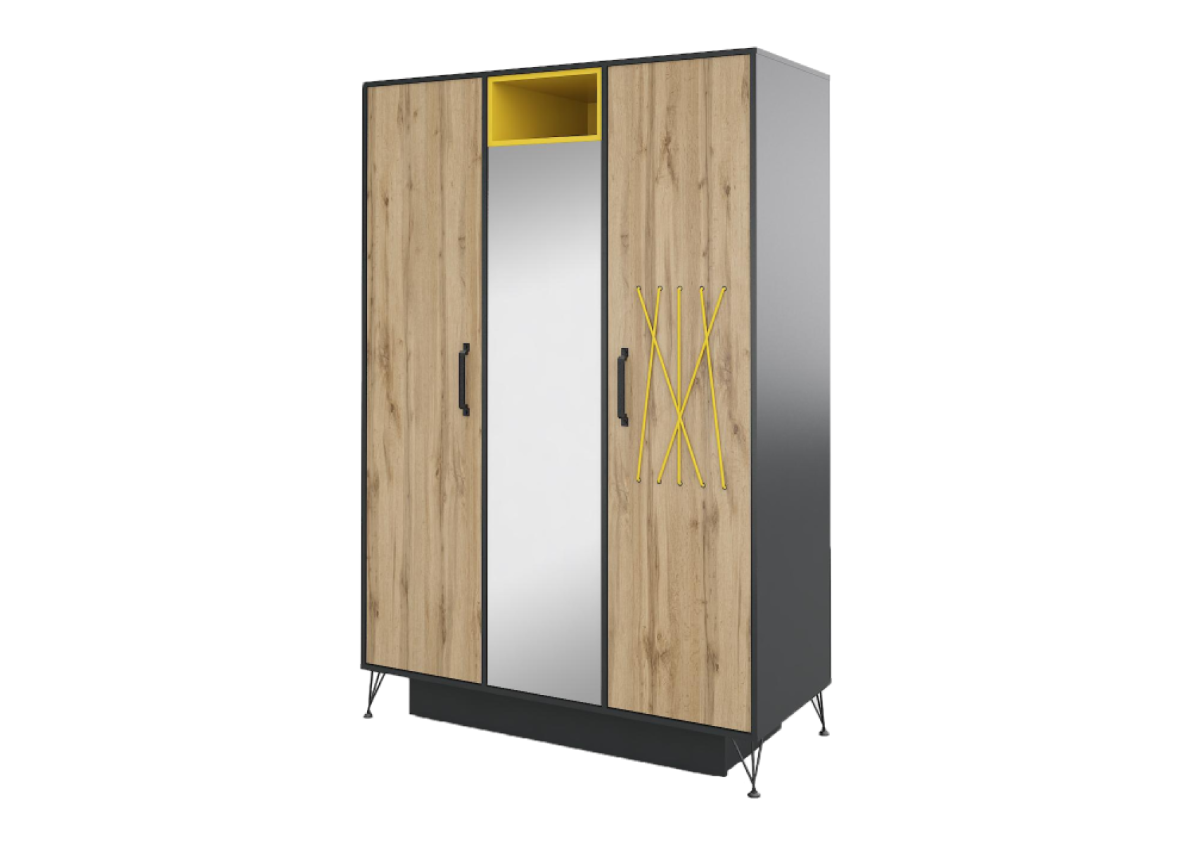 Шкаф трехдверный Нобира антрацит / дуб ирландский / солнечный свет