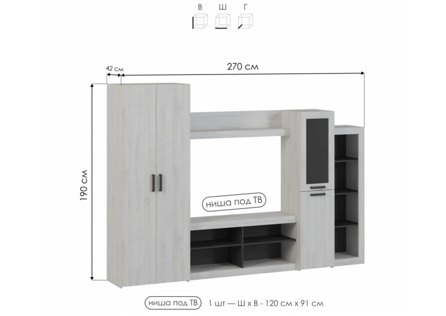 Готовая гостиная Огюст 4 сосна белая лофт / венге