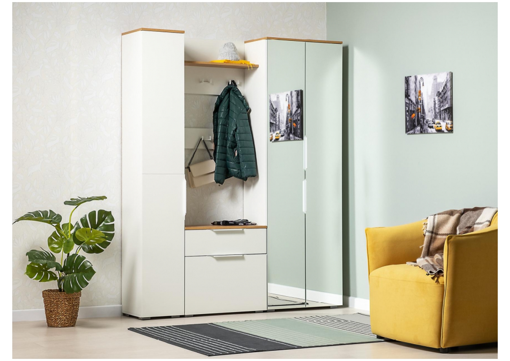 Прихожая Октава 16.127 белый PE шагрень / дуб золотой craft