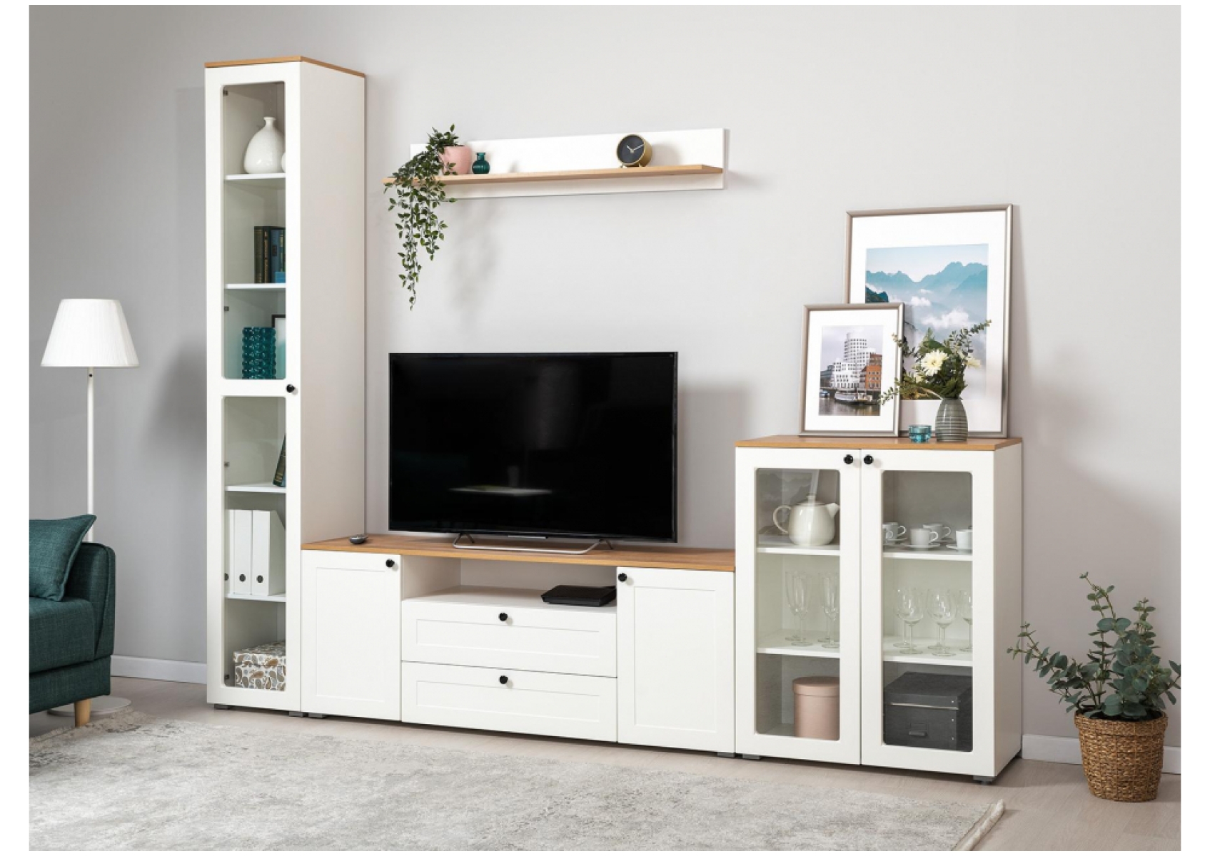 Витрина Опра 16.394.01 белый PE шагрень / дуб золотой craft
