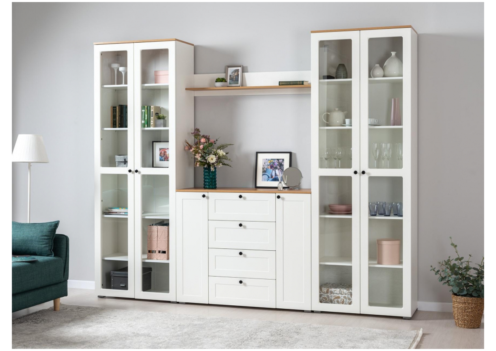 Витрина Опра 16.394.02 белый PE шагрень / дуб золотой craft