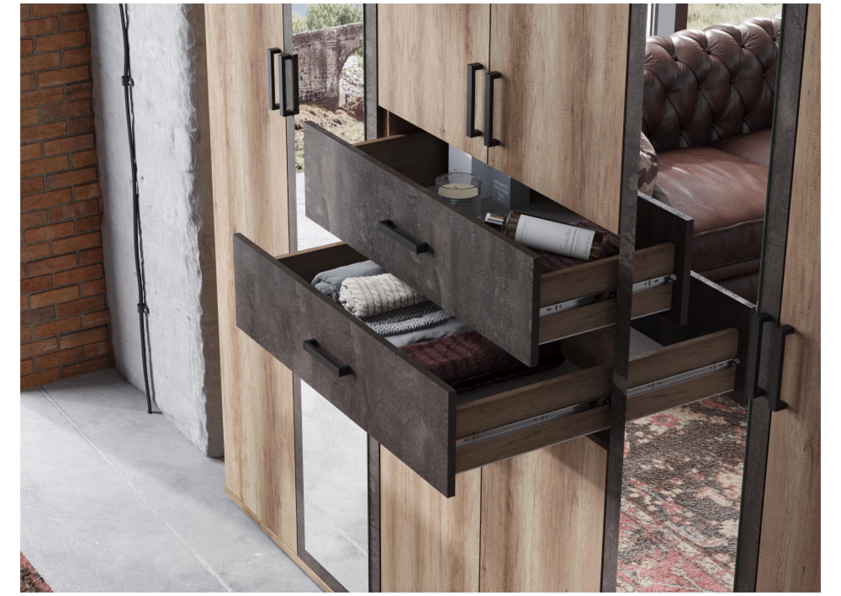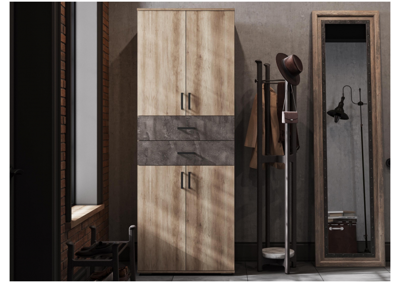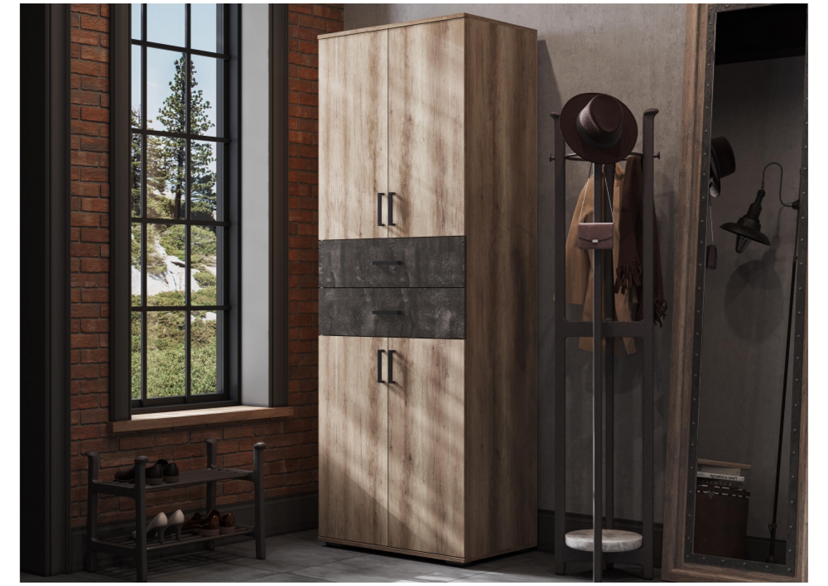 Шкаф Паркинс ШК 05 железный камень / дуб каньон
