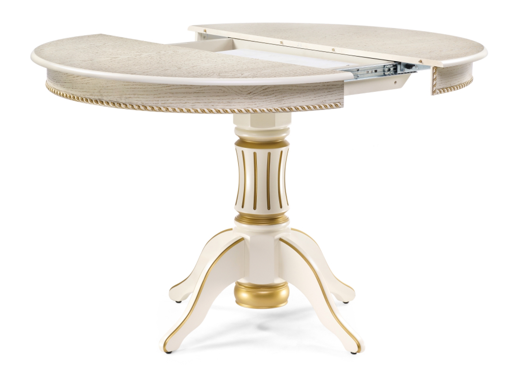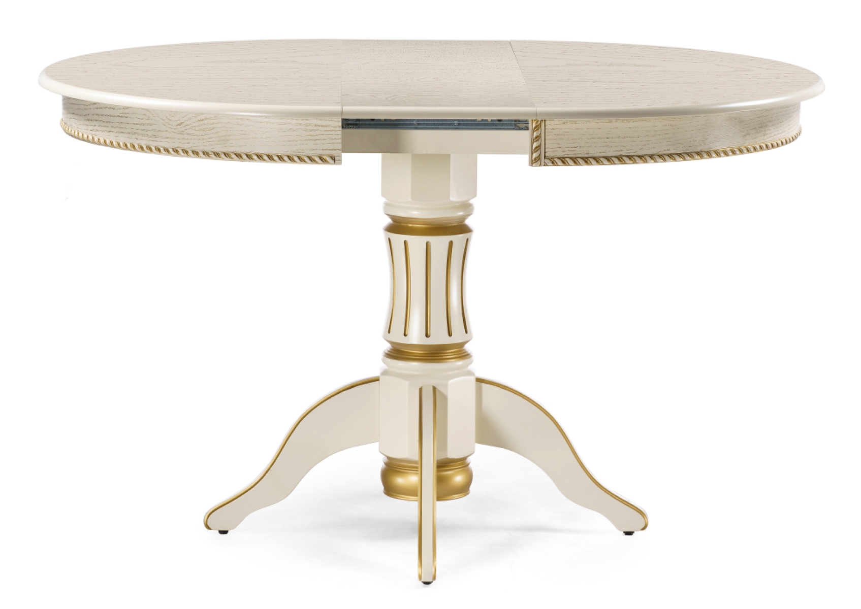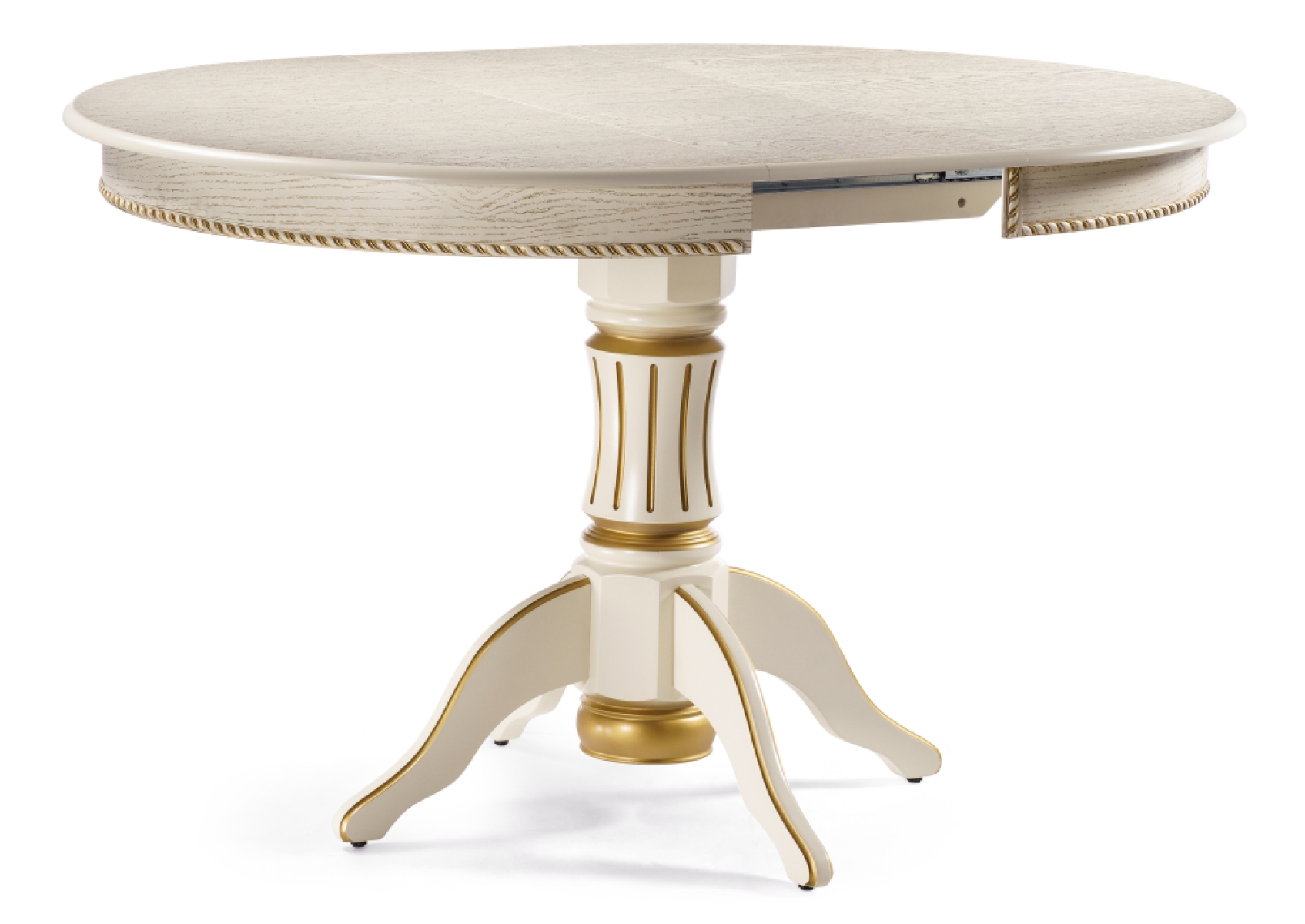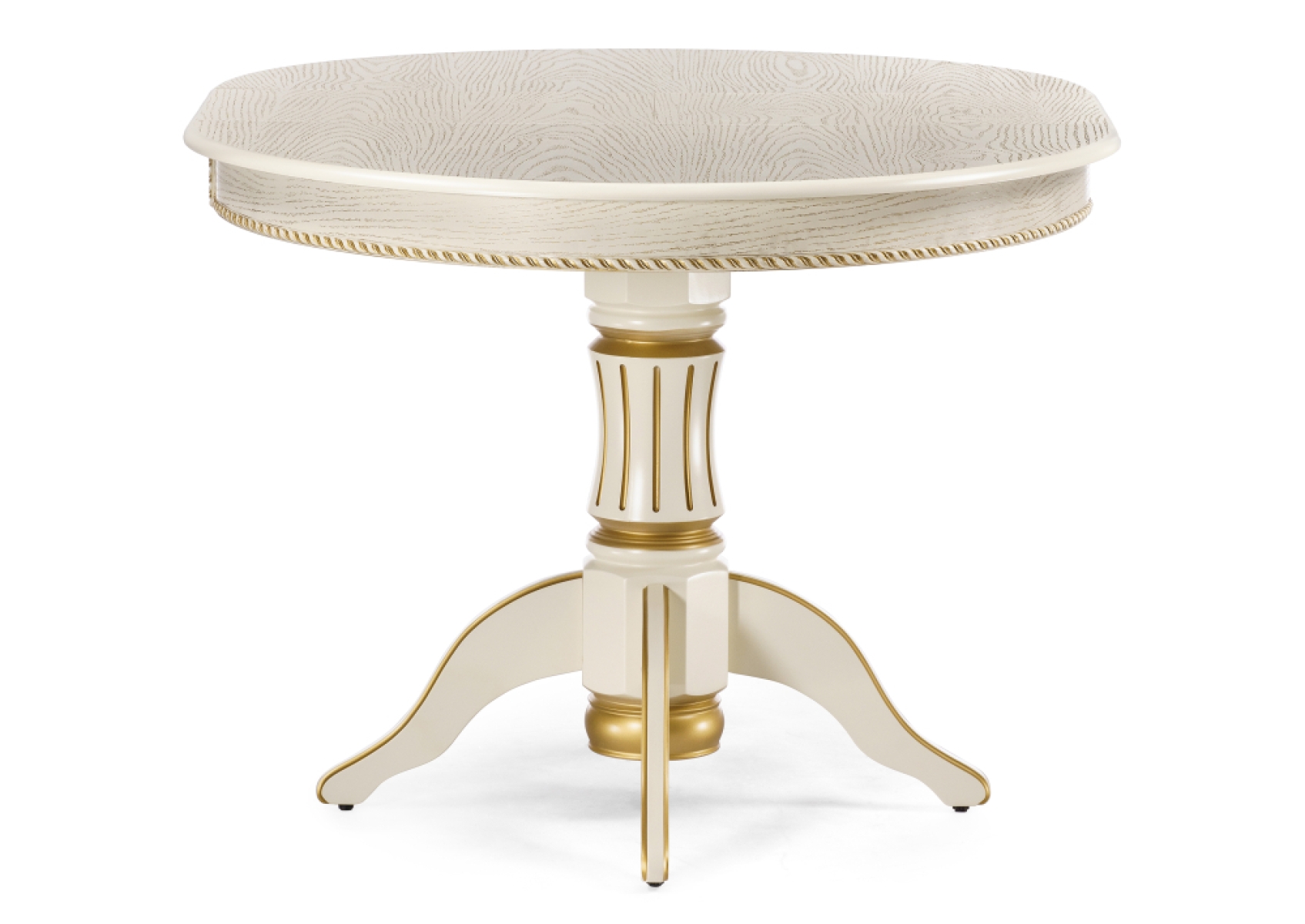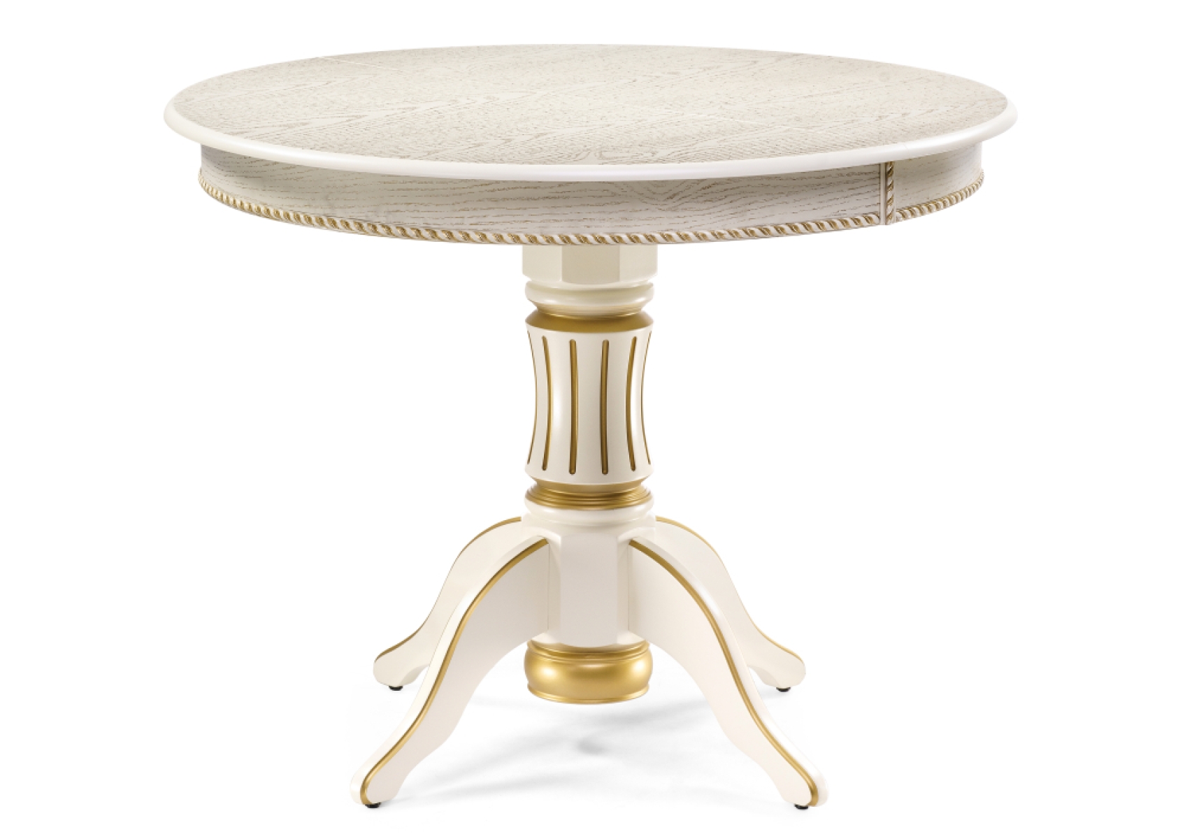 Деревянный стол Павия 100(130)х100х79 слоновая кость с золотой патиной