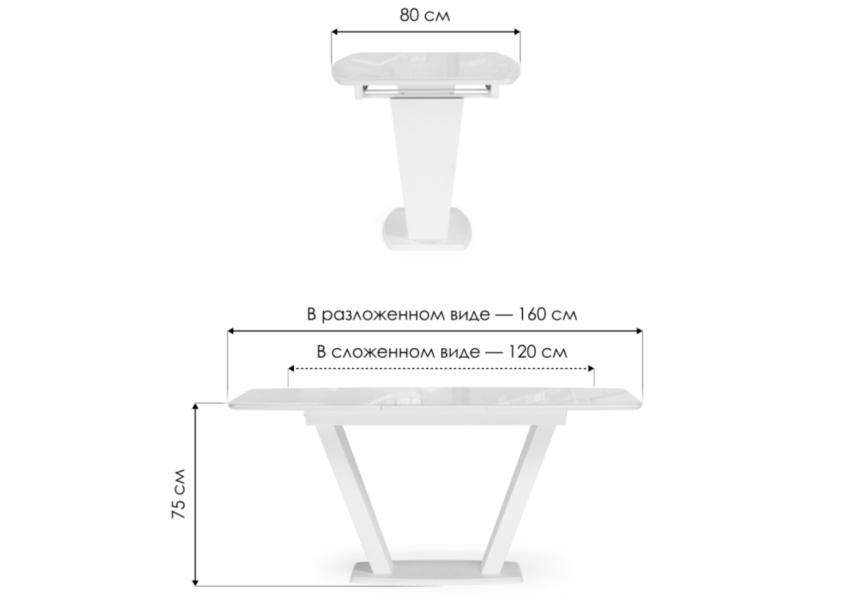 Стол на тумбе Петир 120(160)х80х75 ультра белый / гриджио / камень серый