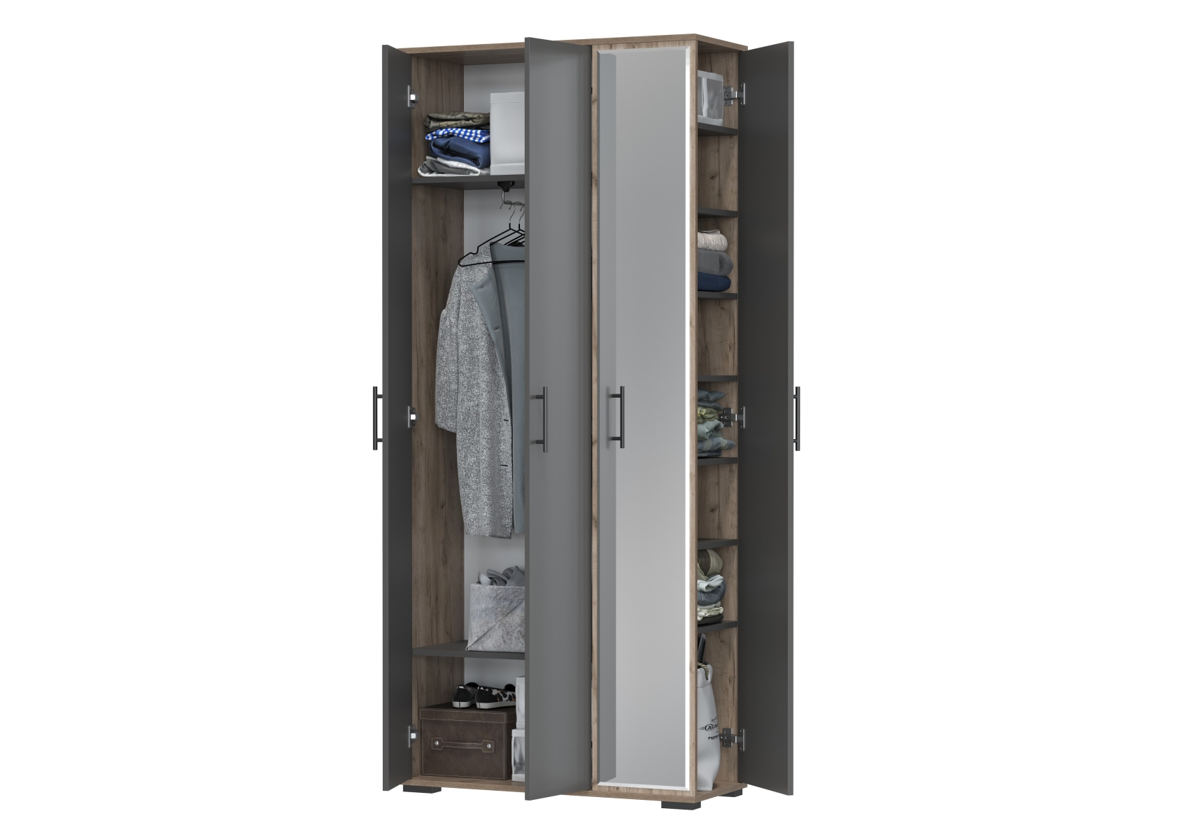 Прихожая 2-3421дкт/граф Домино-мини, цвет дуб крафт табачный/графит, ШхГхВ 88х36х202 см., универсальная сборка