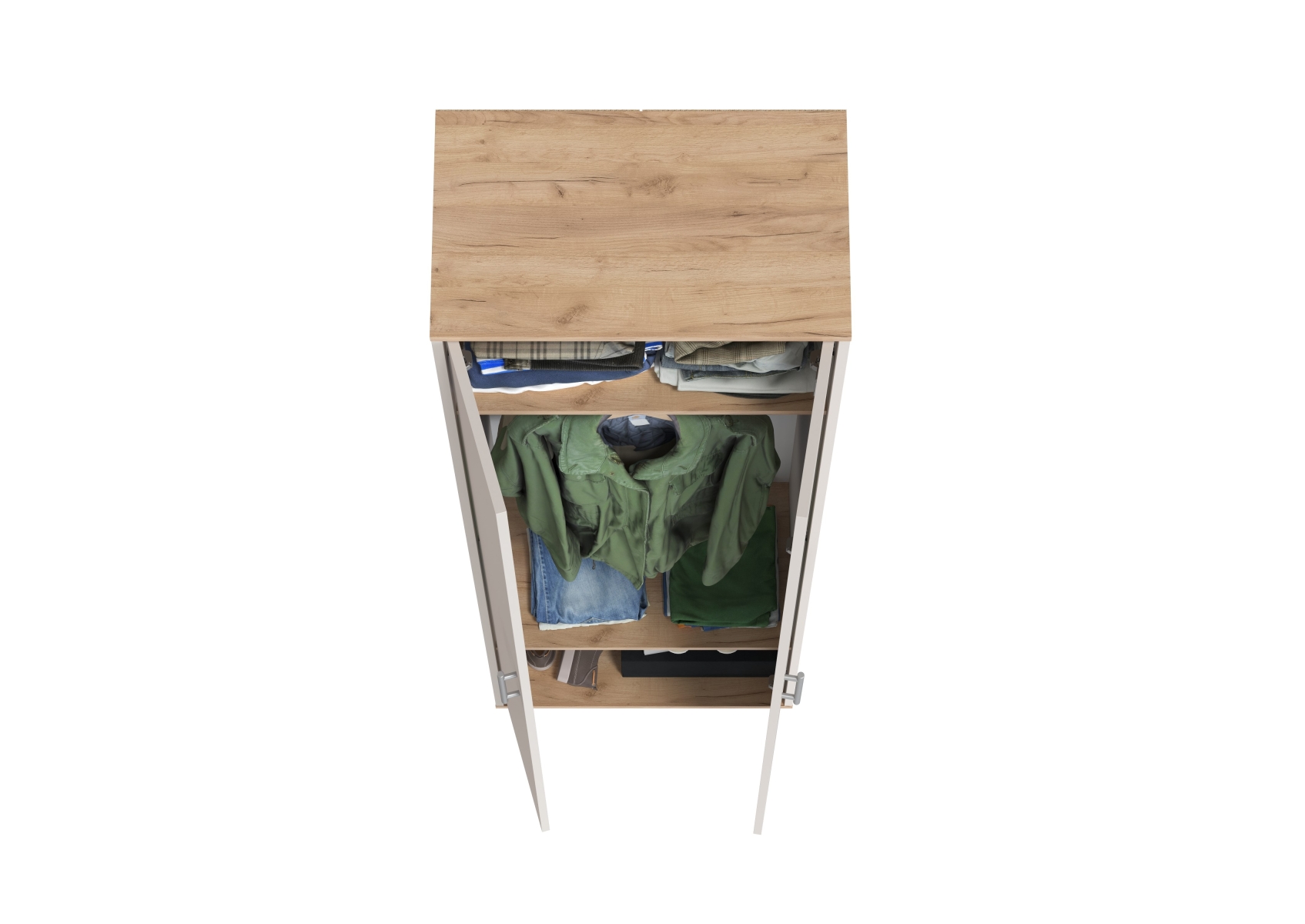 Шкаф для одежды Домино 2-3430. Цвет - дуб крафт золотой/кашемир серый. Габариты (ШхГхВ) - 60х36х202 см. Компактный и вместительный шкаф состоит из закрытого двумя распашными дверками отделения для одежды. Шкаф оборудован штангой для вешалок, антресольной полкой для головных уборов и нижней полкой, выделяющей нишу для обуви.