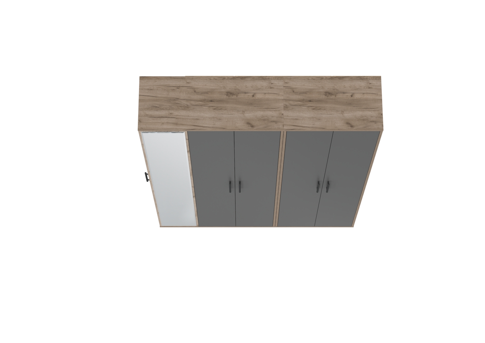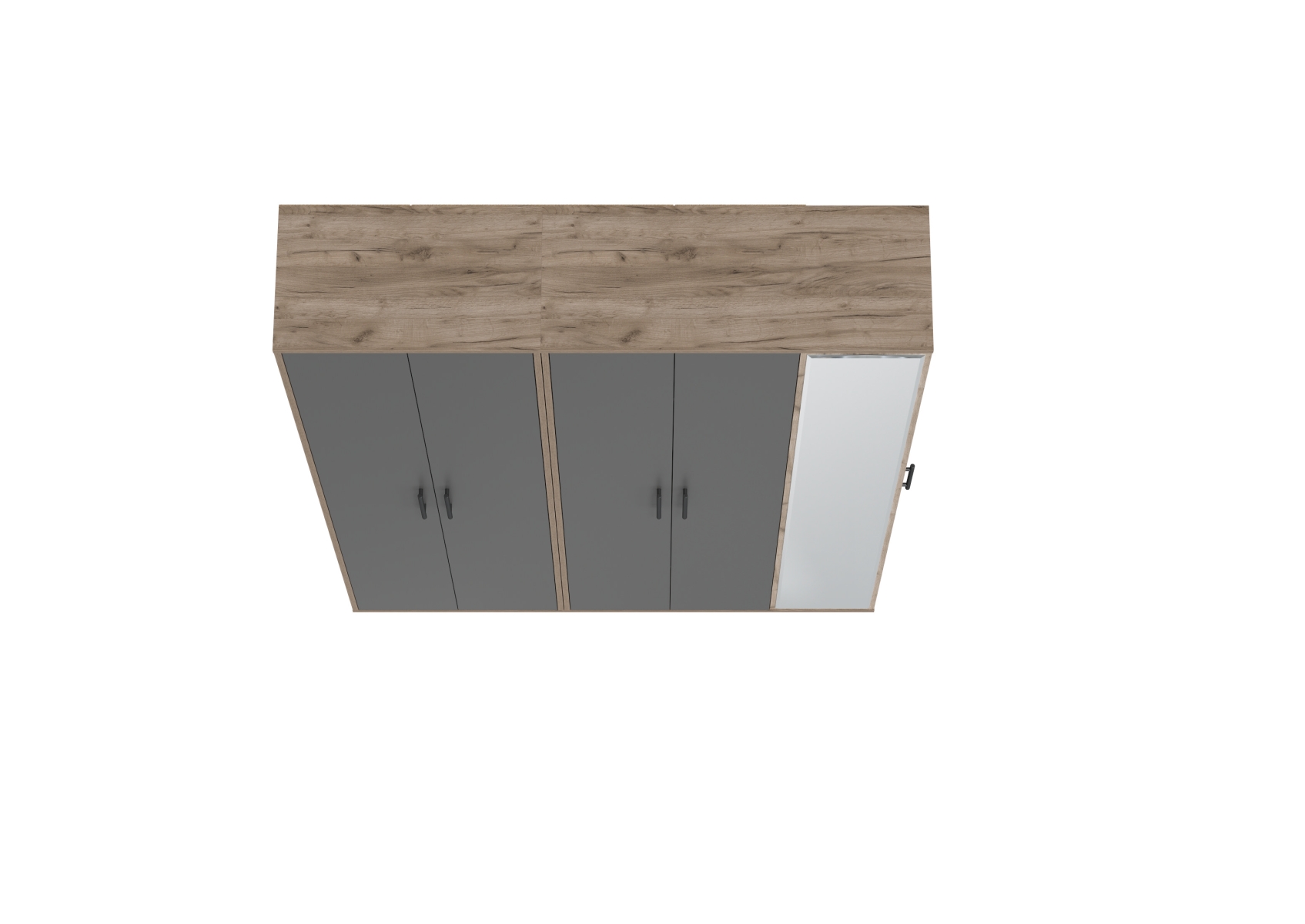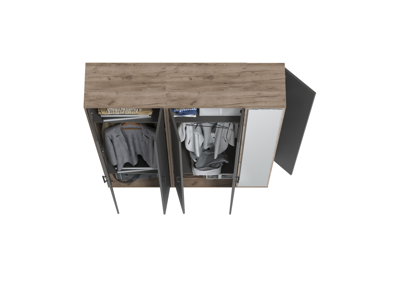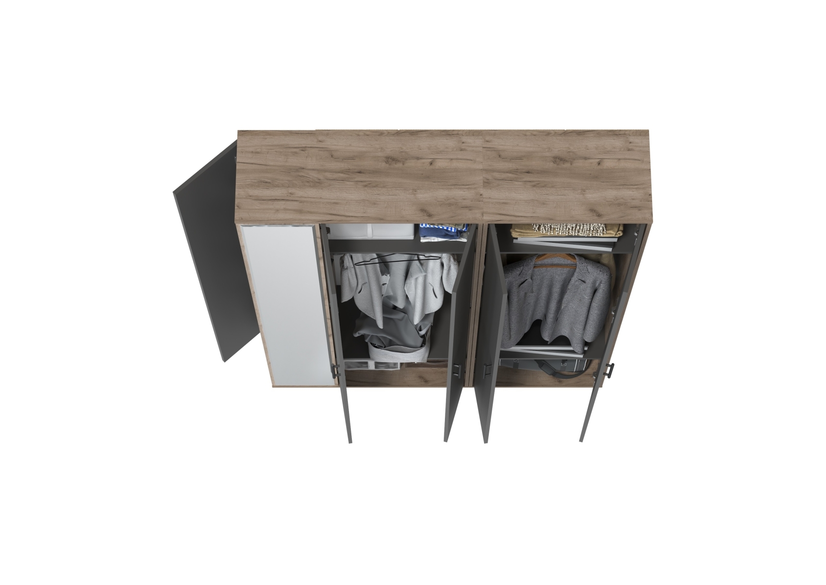 Прихожая Домино-мини + Шкаф для одежды Домино. Цвет - дуб крафт табачный/графит. Габариты (ШхГхВ) 148х36х202 см. Шкаф оборудован штангой для вешалок, антресольной полкой для головных уборов и нижней полкой, выделяющей нишу для обуви. Шкаф с зеркалом в полный рост состоит из отделения для одежды, отделения с полками и большого зеркала, украшающего фасад.