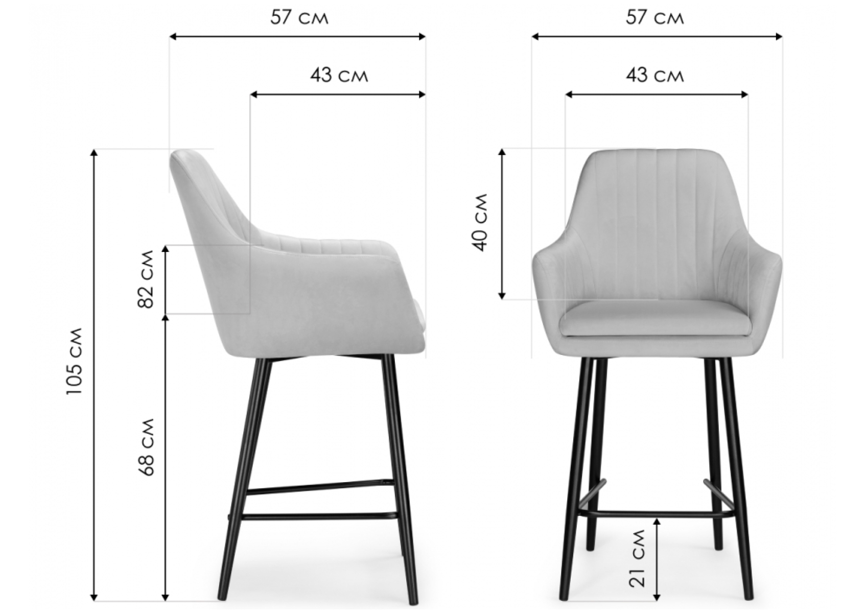 Полубарный стул Райнер - это стильный и удобный выбор для тех, кто хочет создать комфортную атмосферу в своем домашнем баре или на кухне. Каркас стула выполнен из прочного металла, что обеспечивает надежность и долговечность изделия. Сиденье и спинка стула обиты мягким велюром, который создает ощущение комфорта и роскоши. На спинке стула вы найдете узор, который придает дополнительный шарм и элегантность этому предмету мебели.