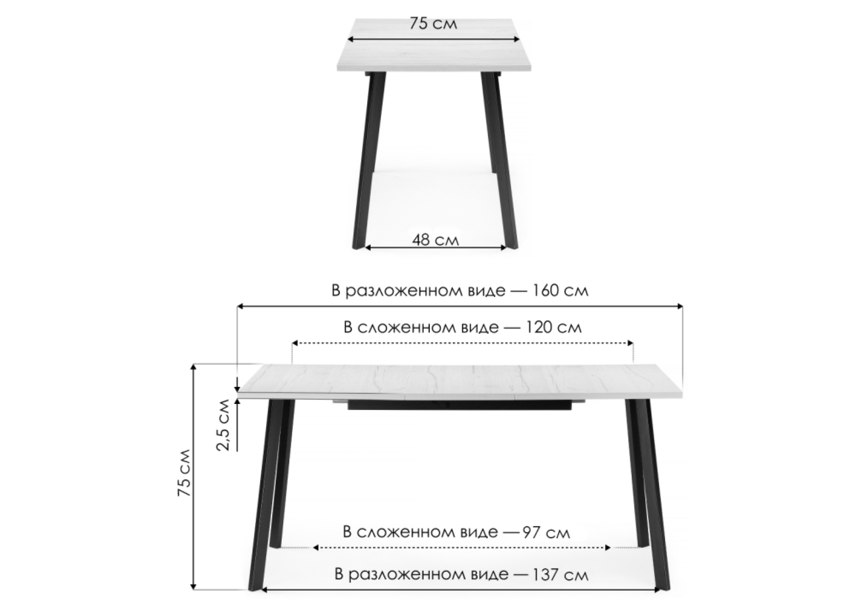 Длина стола в разложенном виде