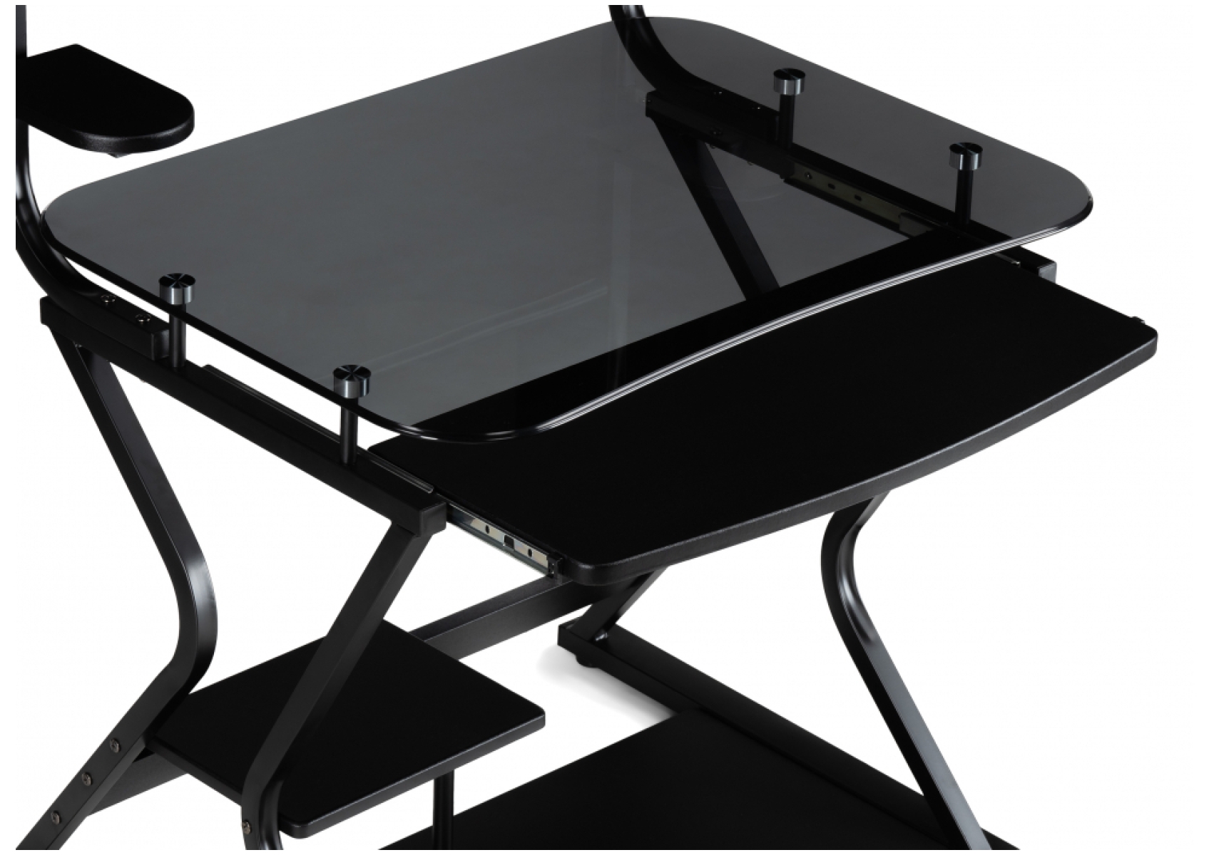 Компьютерный стол Roni - это компактный и удобный стол для работы на компьютере. Столешница стола выполнена из стекла, что придает ему современный и стильный вид. Полка для клавиатуры выполнена из ЛДСП, что обеспечивает дополнительную прочность и долговечность. На столе также имеются полки для колонок и полка над монитором, что позволяет максимизировать использование рабочего пространства. Под столешницей также есть полка для системного блока и оргтехники, что обеспечивает дополнительное место для хранения. Каркас стола выполнен из металла, что обеспечивает прочность и надежность. Кроме того, стол Roni имеет подставку для ног, что обеспечивает дополнительный комфорт при работе на компьютере. В целом, компьютерный стол Roni - это отличный выбор для тех, кто ищет компактный и удобный стол для работы на компьютере с дополнительными полками и подставкой для ног.