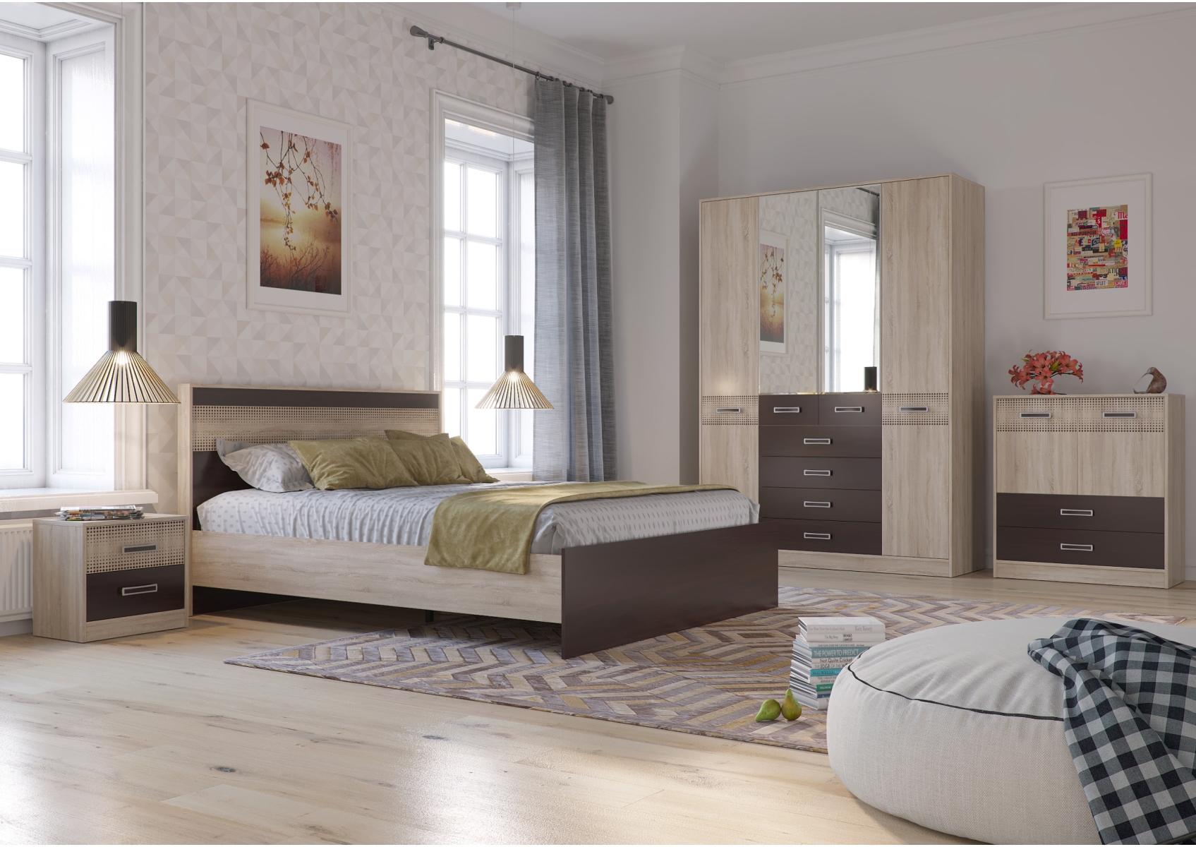 Румба 4-4424дубсонвн Комод с дверками и ящиками, цвет дуб сонома/венге, ШхГхВ 90х43х100 см.