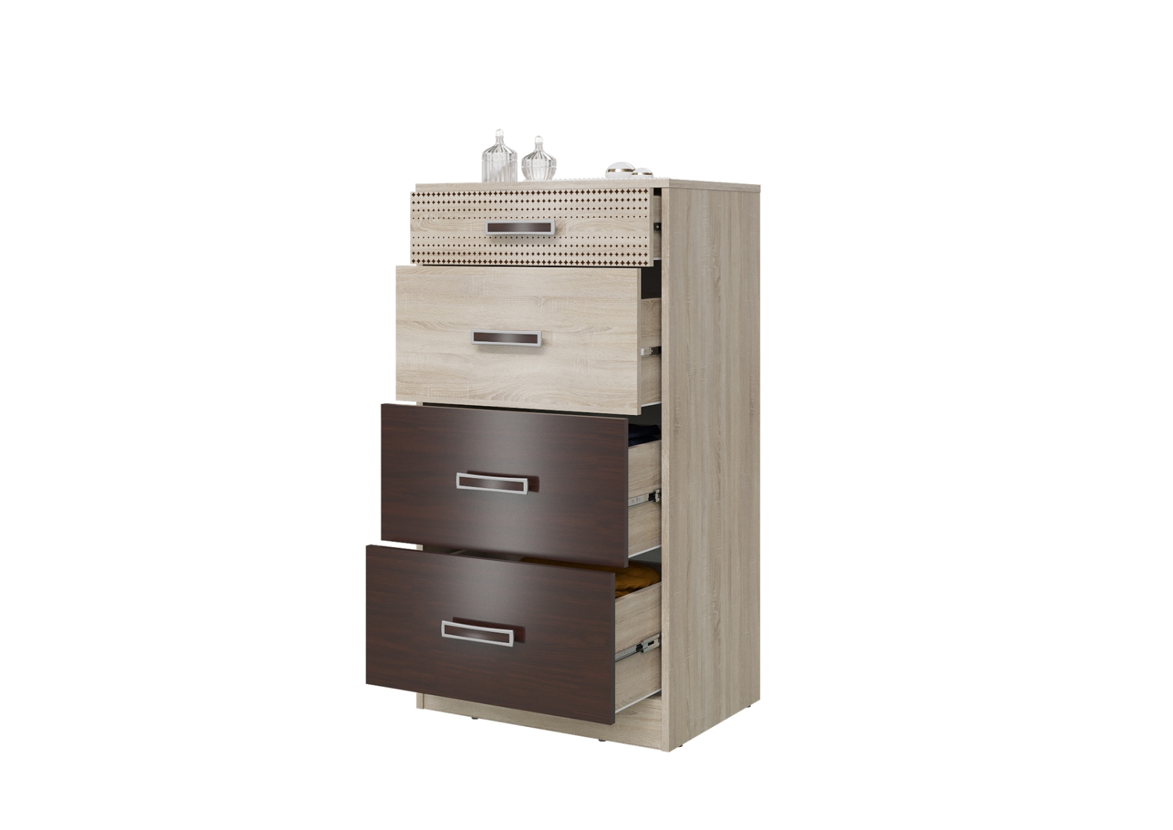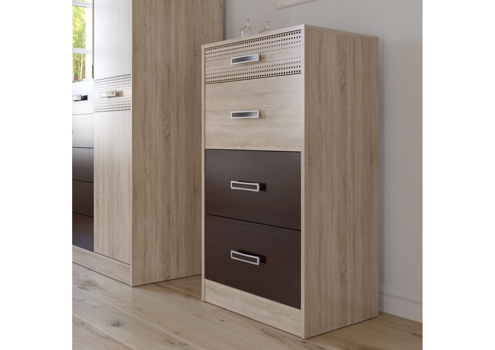 Румба 4-4427дубсонвн Комод с четырьмя ящиками, цвет дуб сонома/венге, ШхГхВ 60х43х110 см.