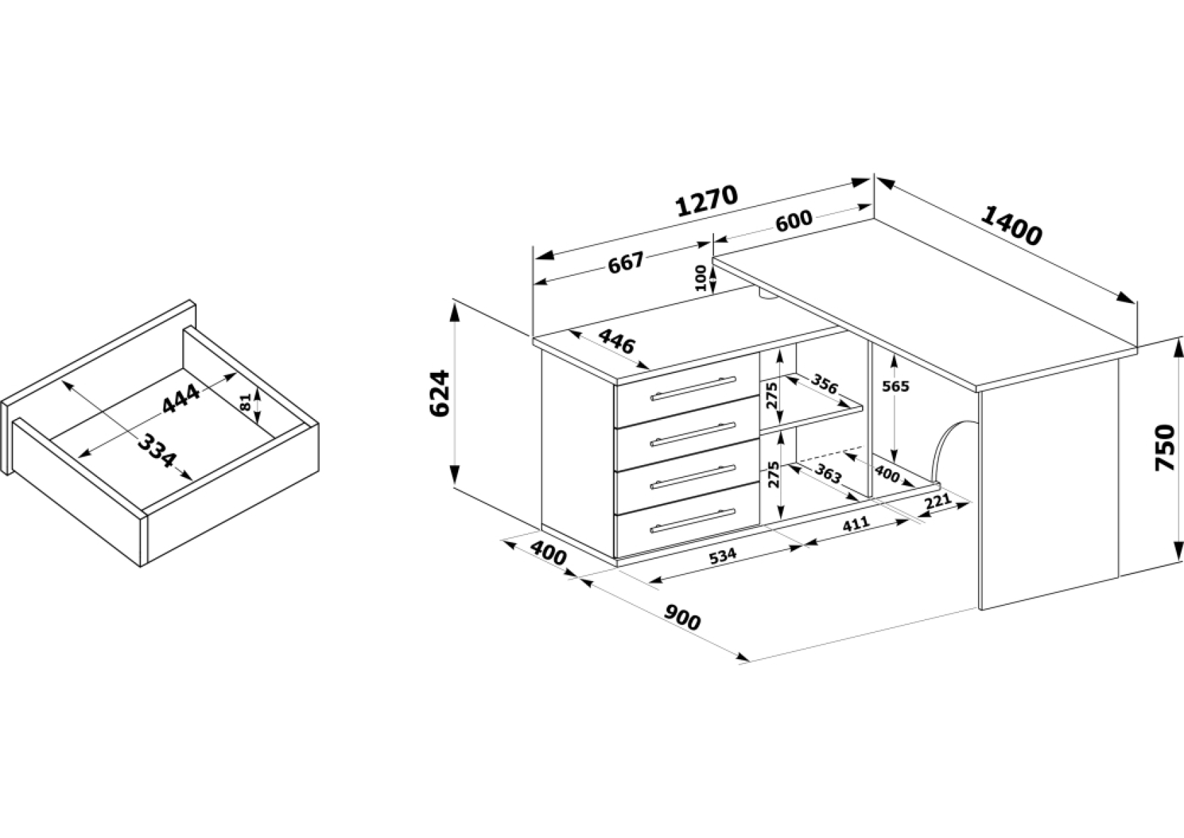 Компьютерный стол КСТ-109 127х140х75 левый белый