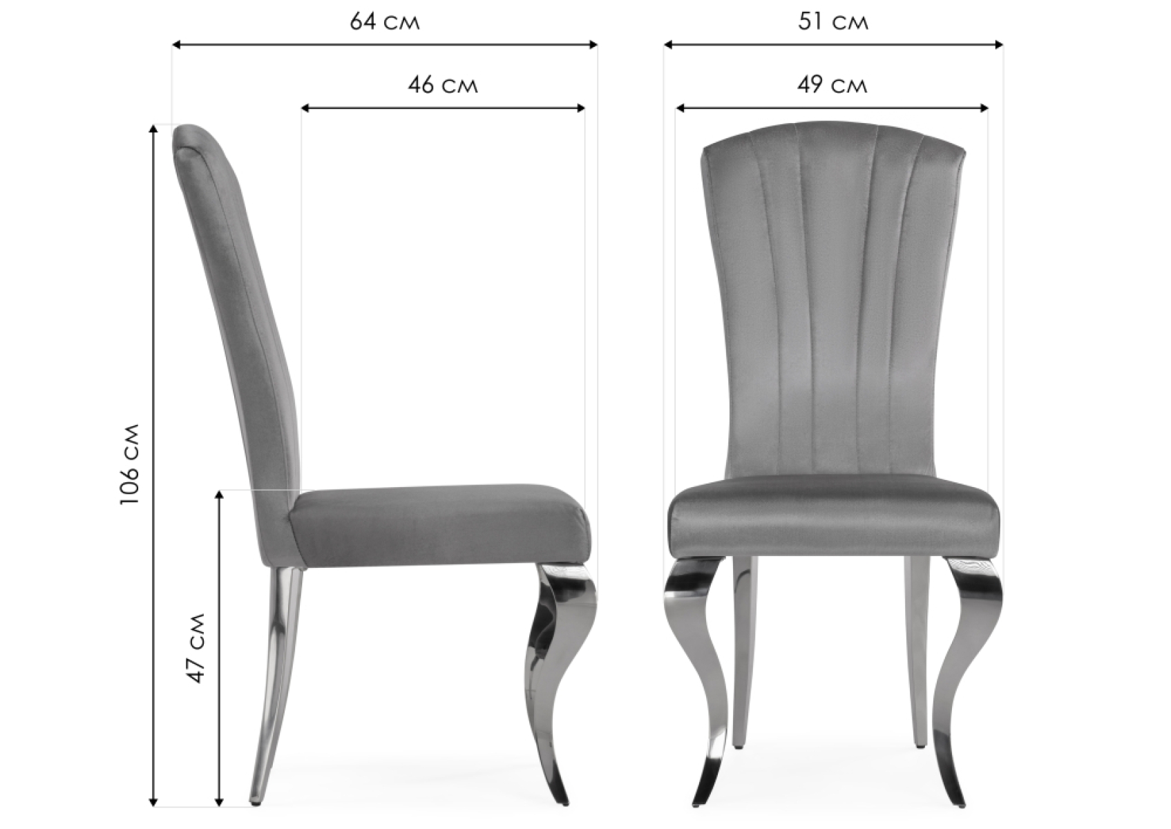 Стул Sally - это стильный и удобный стул на металлокаркасе. Ножки стула выполнены из гальванизированного хромированного металла, что обеспечивает ему прочность и долговечность. Обивка стула выполнена из мелко ворсистого велюра, что делает его комфортным и приятным на ощупь. Стул имеет высокую спинку, что обеспечивает поддержку спины во время сидения. Sally - это отличное решение для тех, кто ищет стильный и удобный стул для использования в гостиной или столовой.