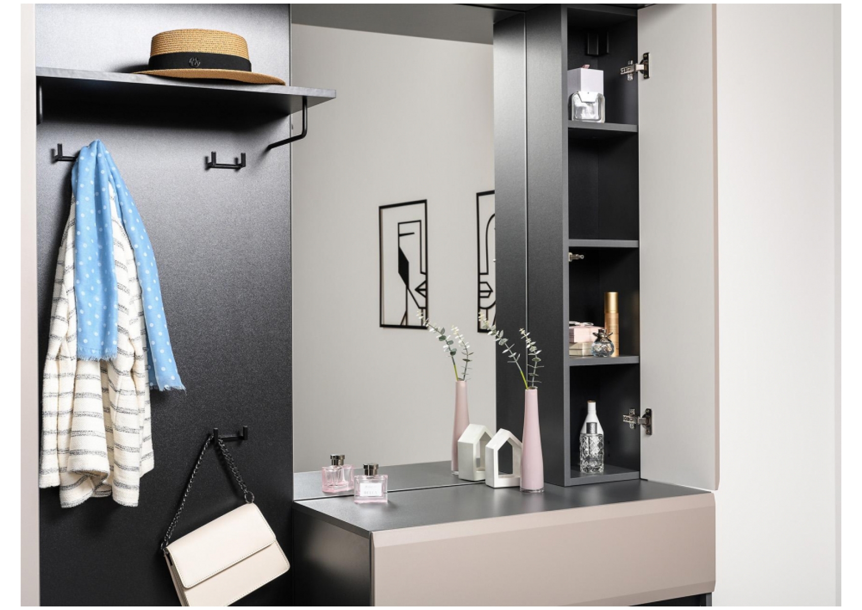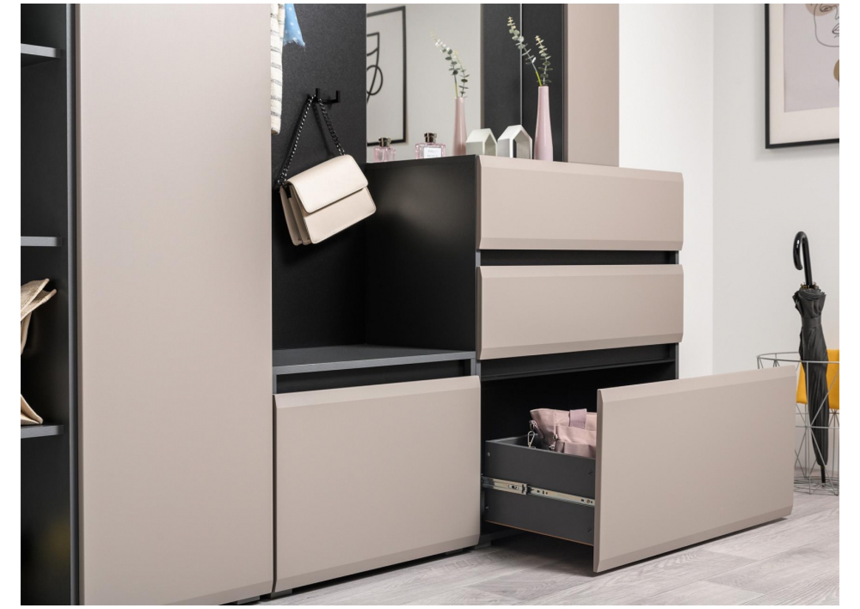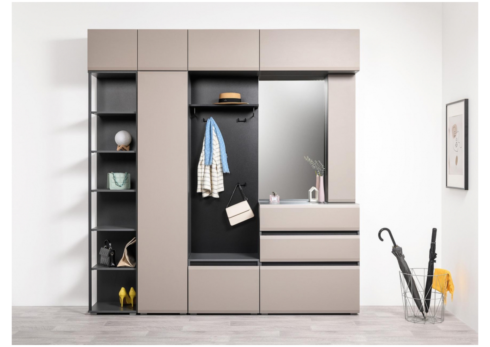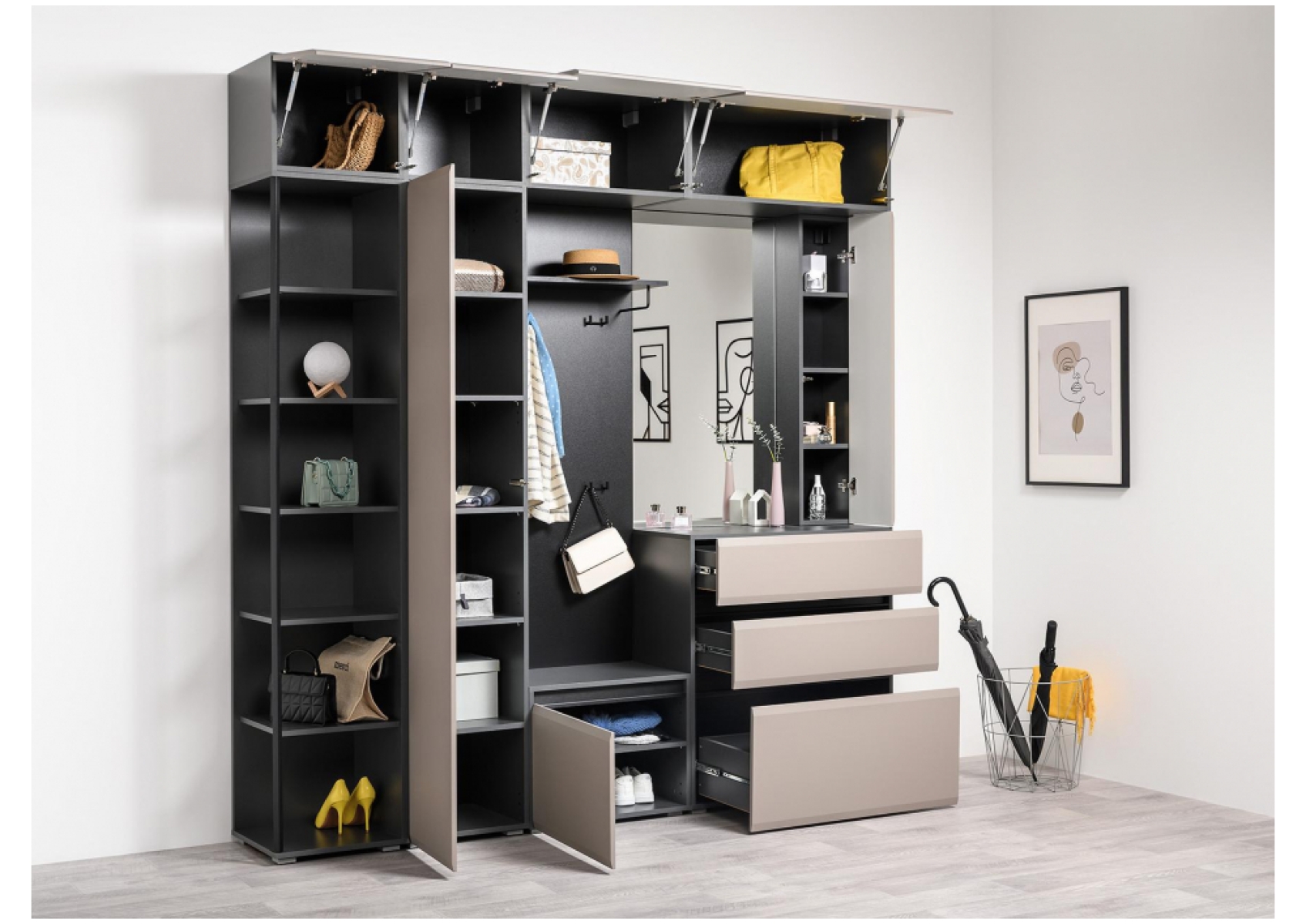 Модульная прихожая Сейдиль антрацит / велюто капучинно Комплектация 1