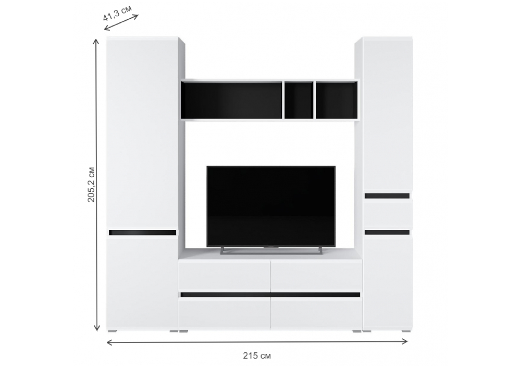 Готовая гостиная Сейдиль белый премиум / черный / белый глянец комплектация 4