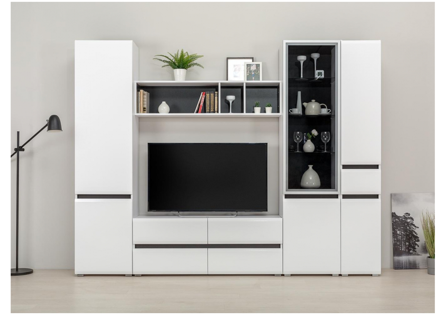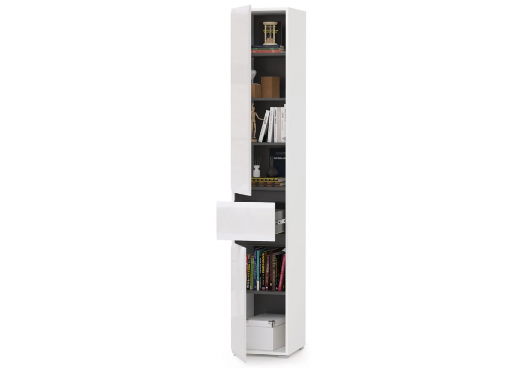 Шкаф Сейдиль с ящиком белый премиум / черный / белый глянец