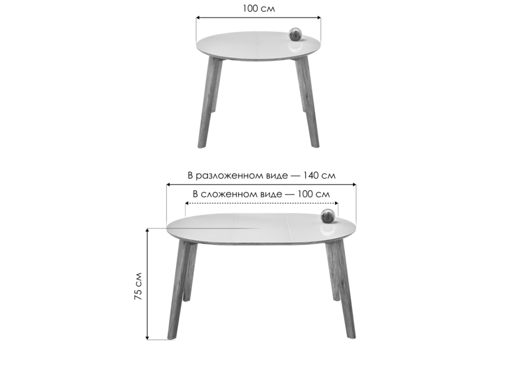 Длина стола в разложенном виде