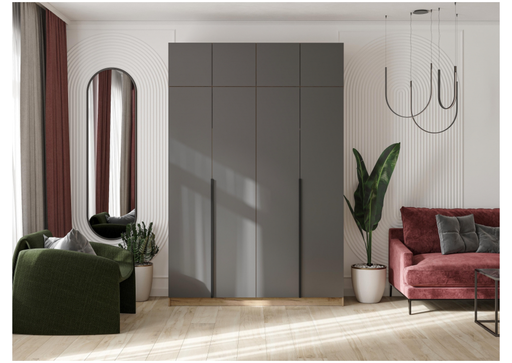 Шкаф Широн 1600 графит серый / дуб крафт золото с антресолью