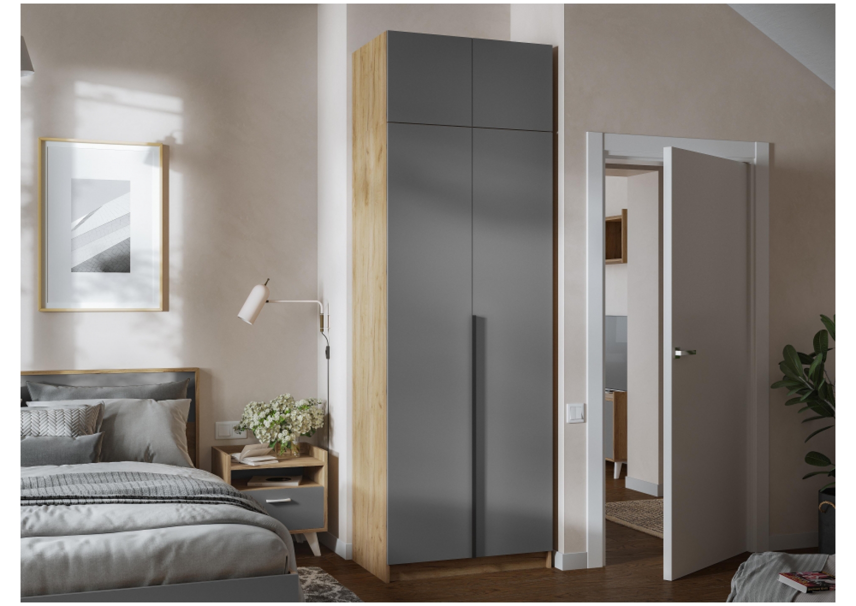 Шкаф Широн 800 графит серый / дуб крафт золото с антресолью