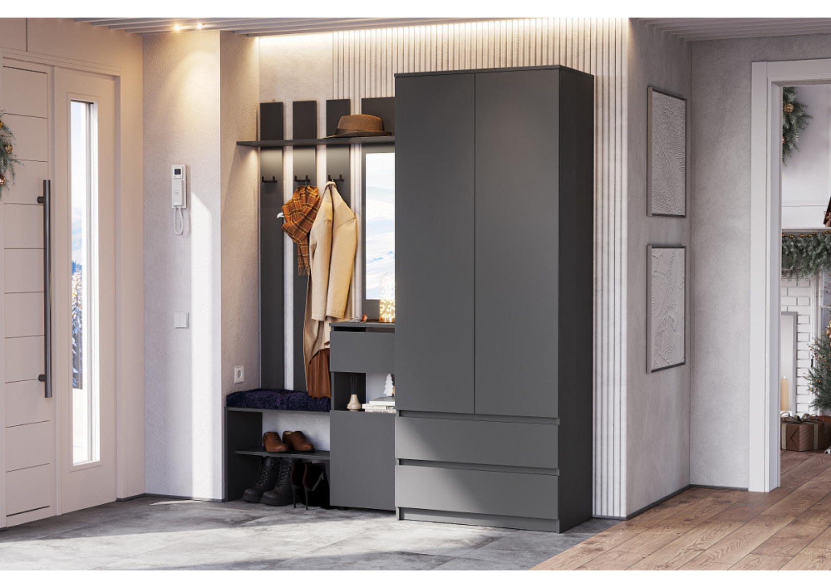 Модульная прихожая Сибити графит серый комплектация 1
