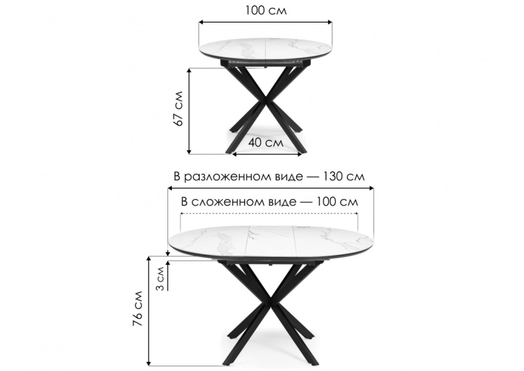 Керамический стол Сигел 100(130)х100х76 белый / черный